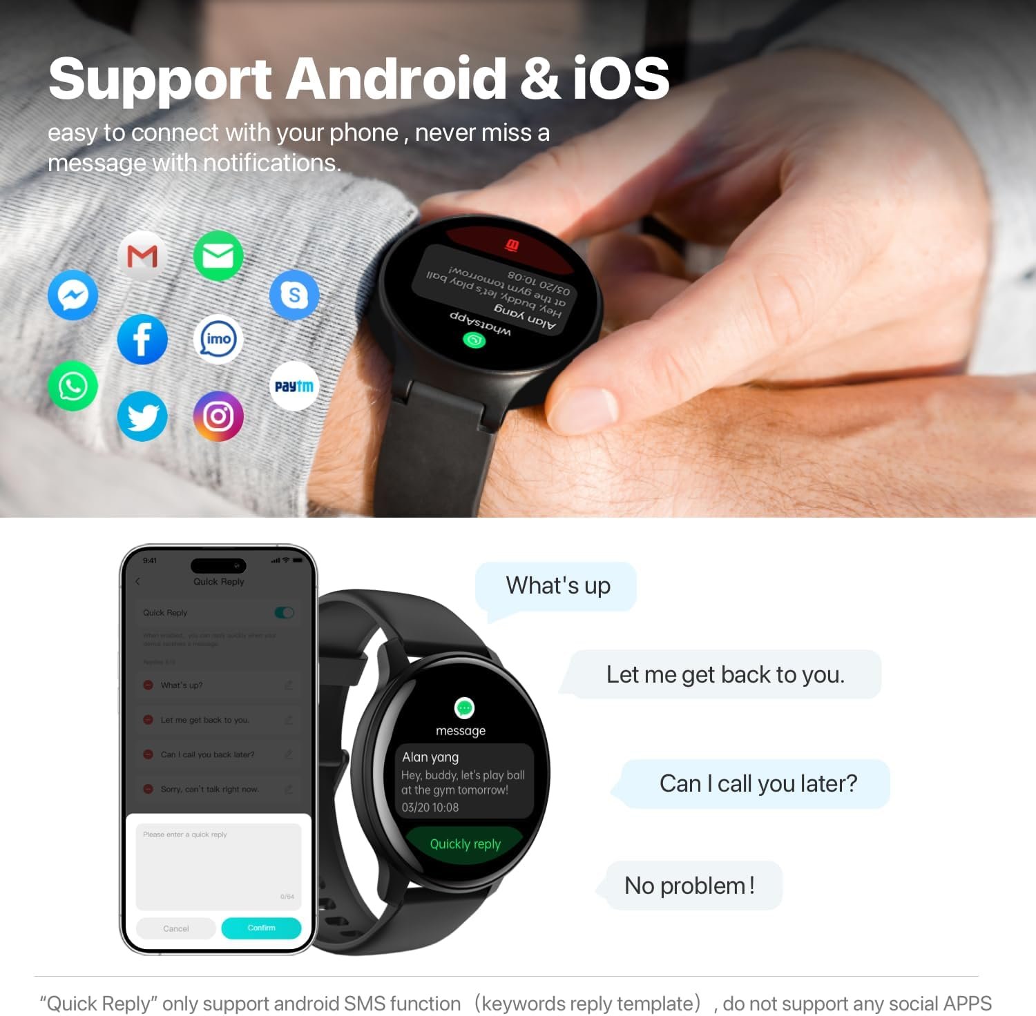 Bluetooth Call and Notification: After connected with your smart phone,then you can make call and answer on your wrise! Support “Raise to wake” .Easy to keep in touch with friends and never miss the notification of your social network .DiVElink smart watch support whatsApp,facebook, X,Gmail, wechat, and the most popular APPS.You can also “Quick Reply”(note: Android only,keywords reply template) the message via your smart watch.