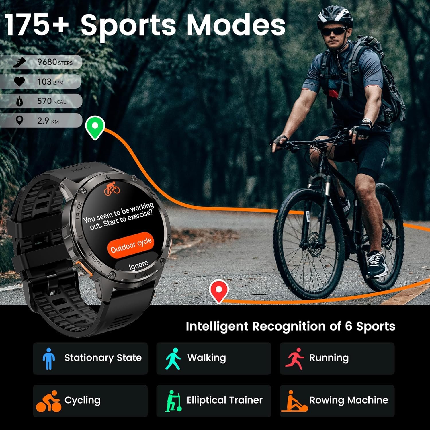 【Military Smart Watch】: Smart watches for men features a durable TC4 titanium alloy case and a 9H double-layer glass display, providing exceptional scratch, drop, and wear resistance. It has passed 15 military-grade tests, showcasing its resilience to extreme conditions, including heat resistance, cold resistance, waterproofing, low pressure resistance, and dustproofing. Built to withstand the toughest environments, it’s the ideal companion for any outdoor adventure.