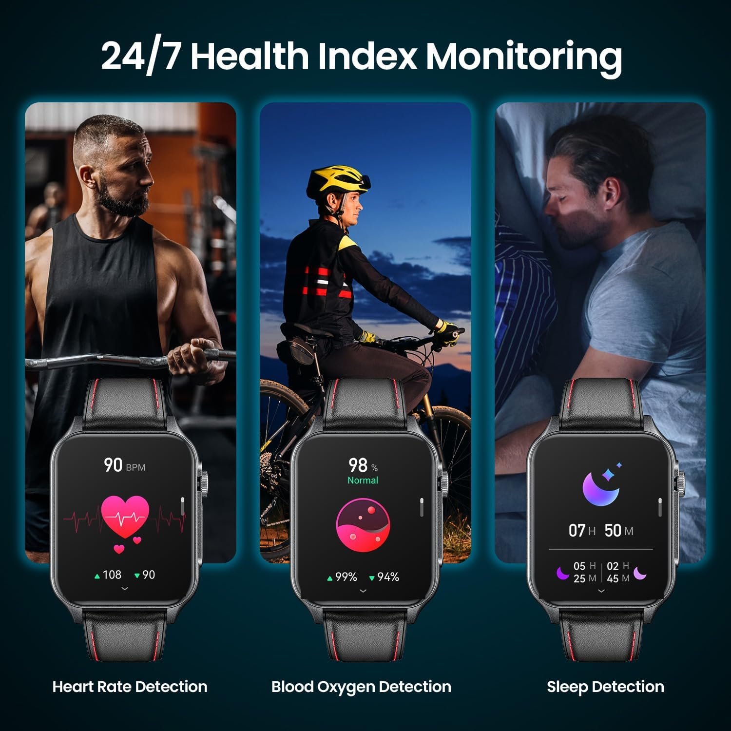 Equipped with advanced sensors, smart watches for men also monitors your heart rate, blood oxygen levels, sleep patterns, and breathing exercises