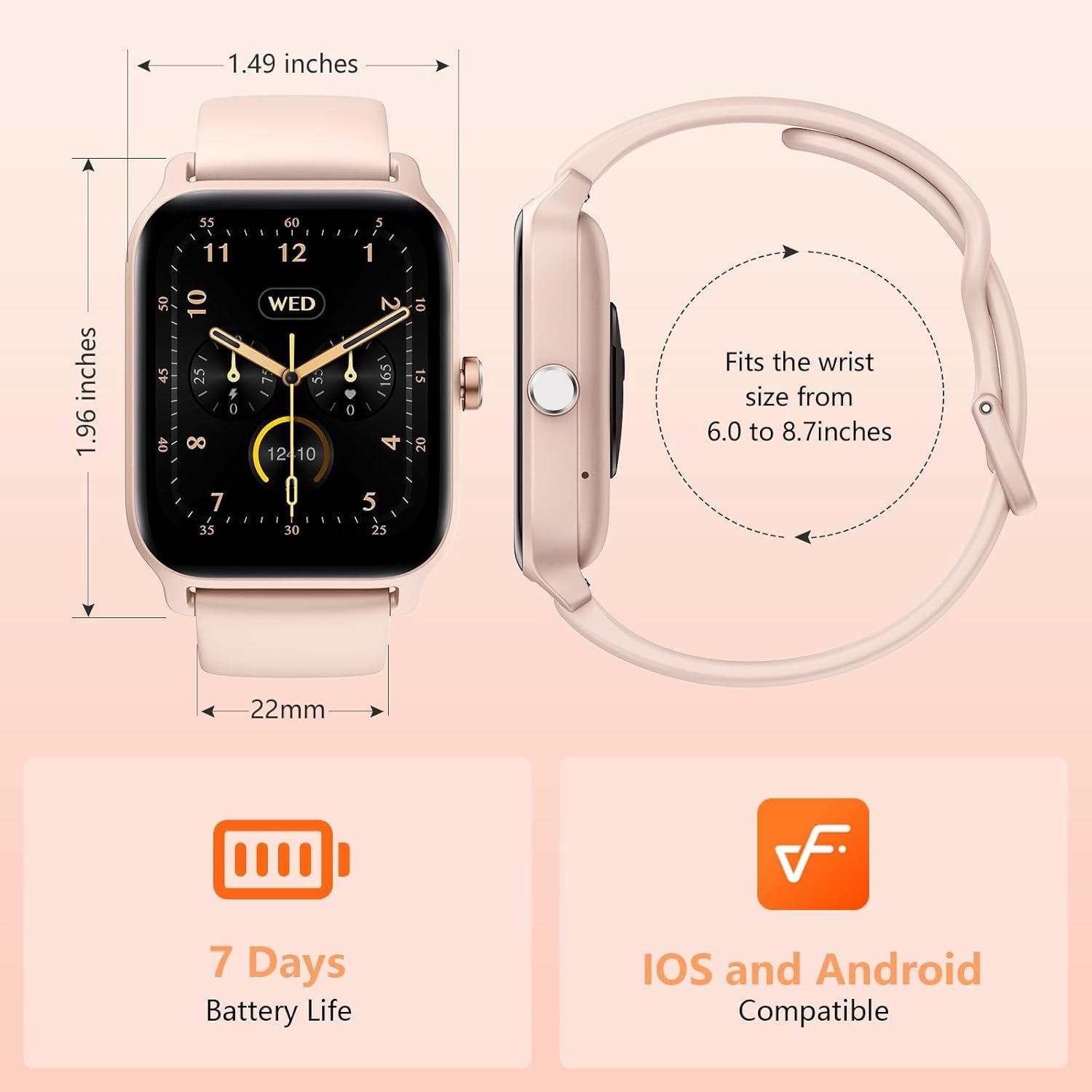 Activity Tracker and Over 100 Exercise Modes:This fitness smart watch accurately record your daily activities, tracking real-time data such as calories steps; This women android smartwatches is designed specifically for fitness enthusiasts over 100 modes