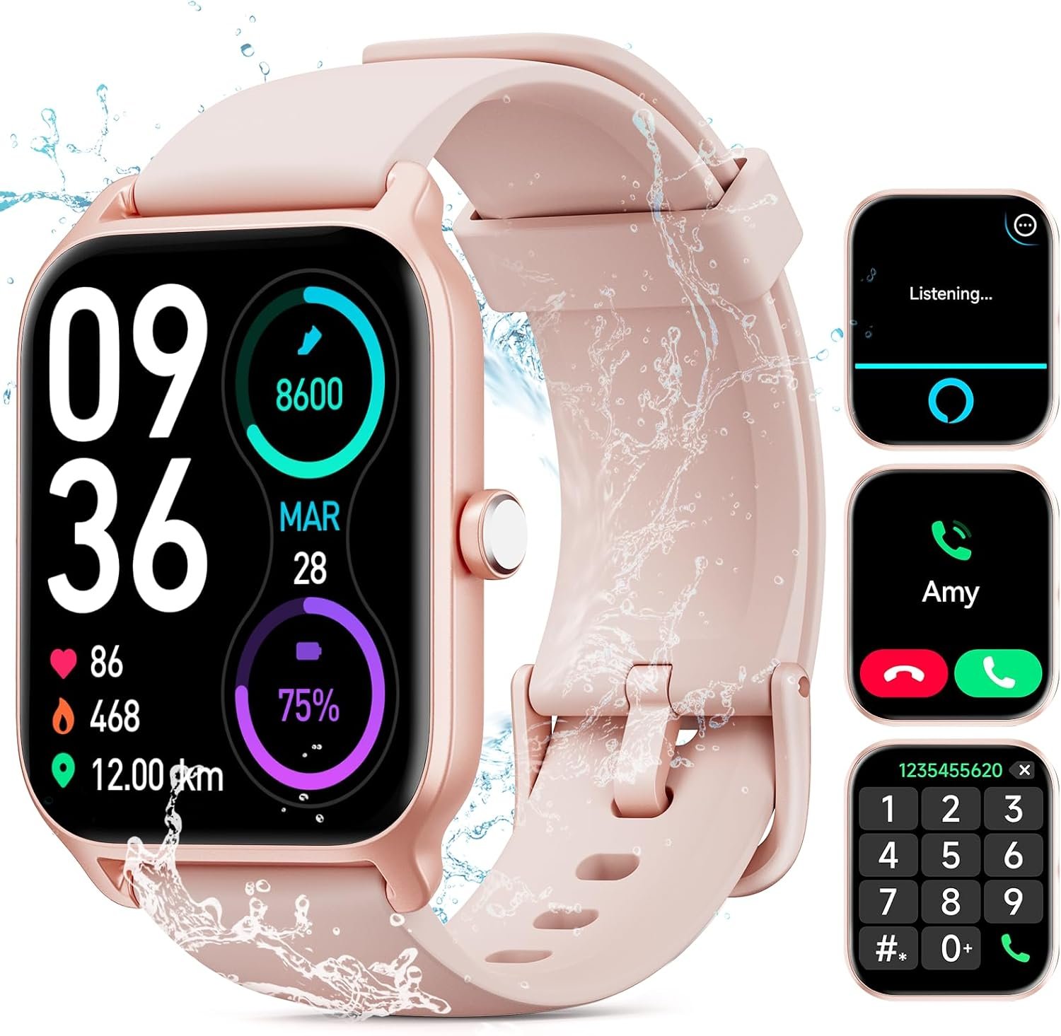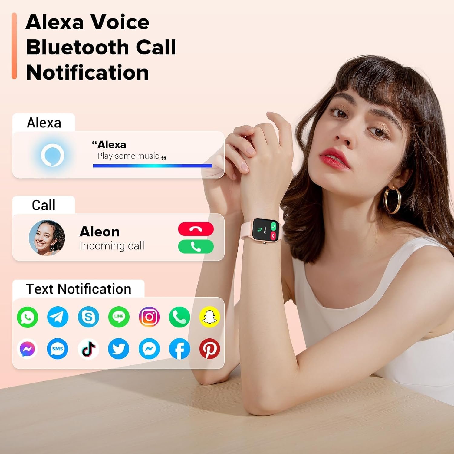 Tailored for fitness but goes beyond just that: The smartwatch boasts a range of features, including Built-in Alexa, Bluetooth calls, SMS and message notifications, Medication reminders, Calculator, Flashlight, Music and Camera control, Alarms, and more