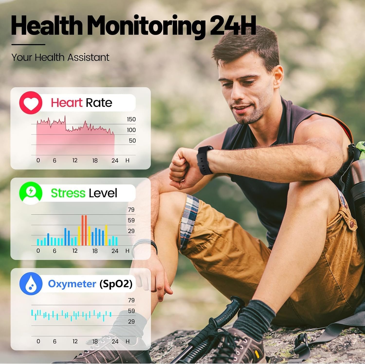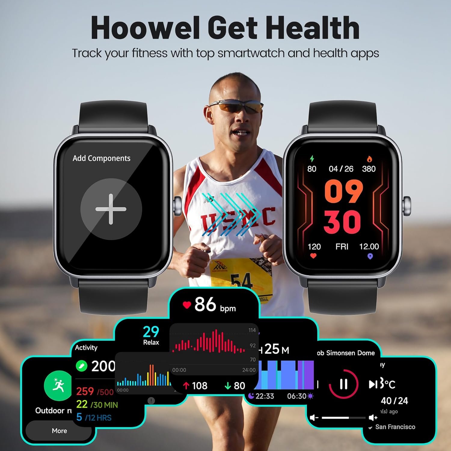 24-Hour Health Monitoring: Hoowel Smart watches adopting advanced sensors, accurately monitors your heart rate in real time and blood oxygen, and it will monitor your sleep status automatically period around and provides comprehensive sleep quality analysis.