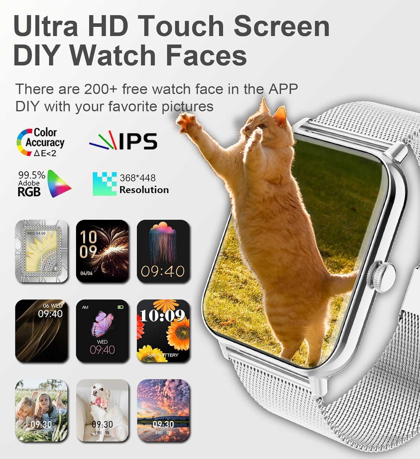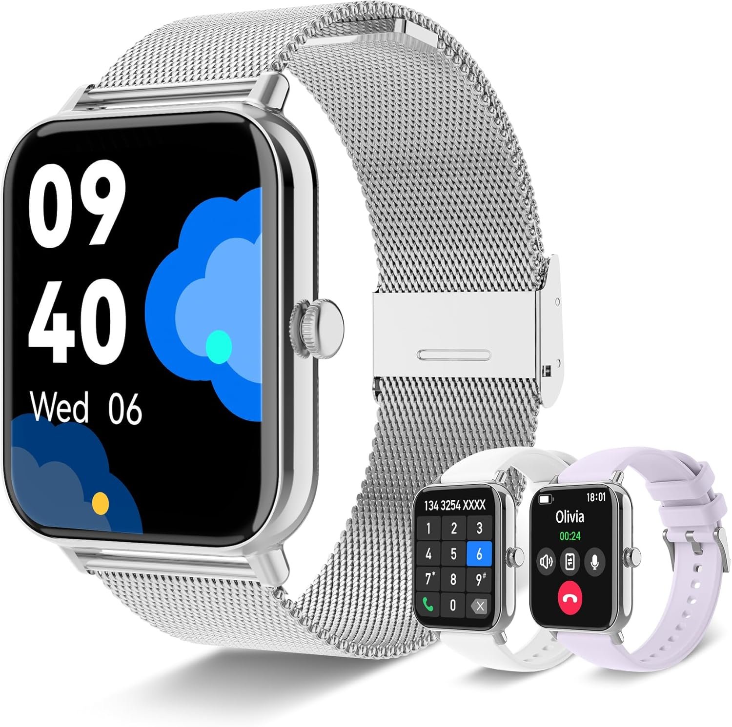 1.85″ Touch Screen & Interchangeable Bands: Elevate your style with the IARET women watch featuring a vivid 1.85″ HD touch screen. Choose from 200+ watch faces or personalize with your photo. The set includes three bands – a chic silver stainless steel strap for elegance, and lavender/white silicone for a sporty or casual look. Easily switch to complement any outfit or occasion. Enjoy a unique blend of fashion and function!
