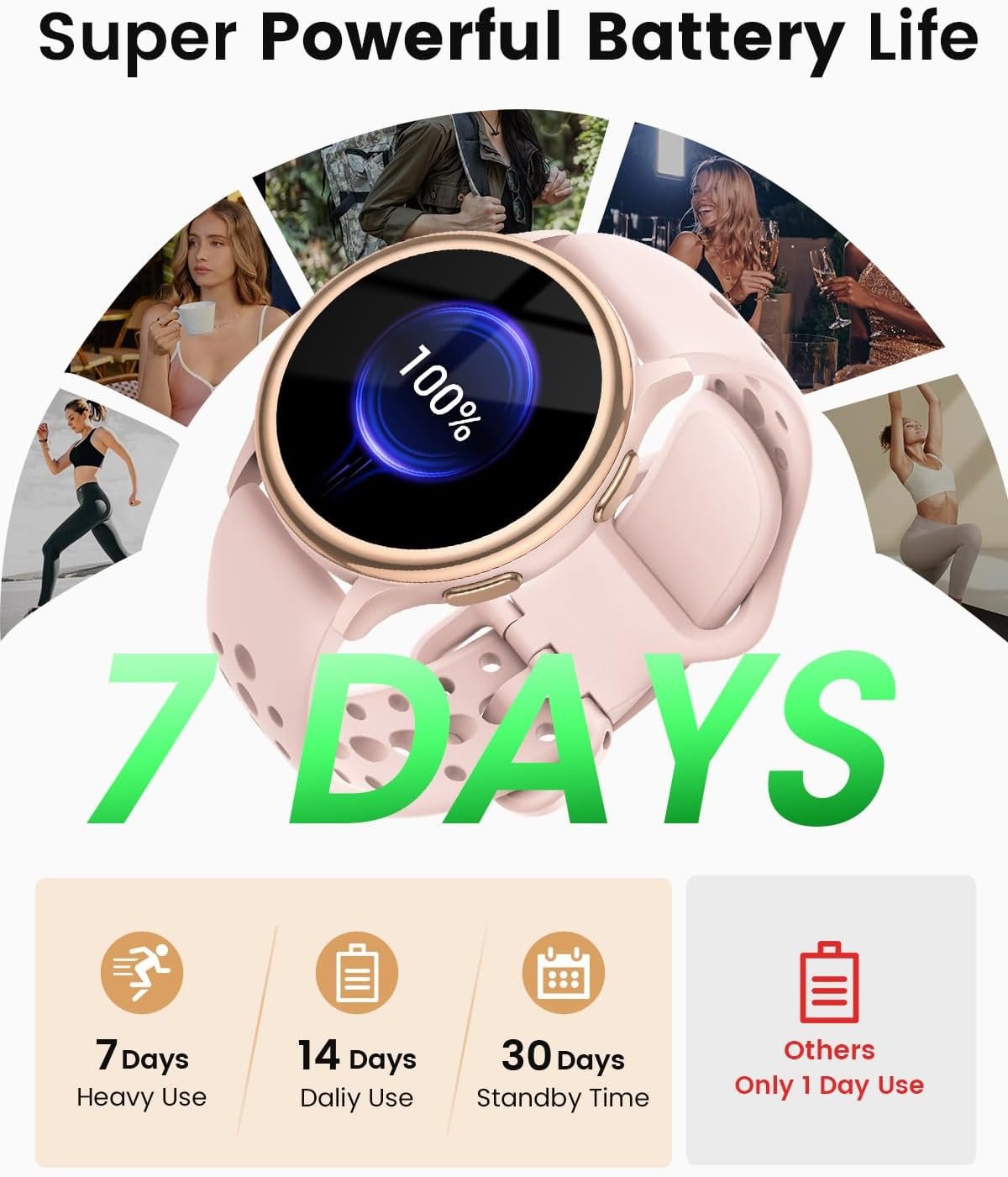 Ultra-Long Battery Life:This smart watches for women is compatible with most smartphones with Android 5.0 and iOS 9.0 and above, with an extended battery life that lets you experience uninterrupted smart living. It has a standby time of up to 30 days, daily use of up to 14 days, heavy use of up to 7 days.