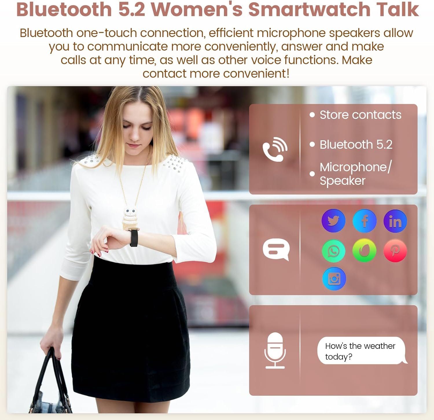 Tips: This fashionable women’s smart watch needs to be used with FitCloudPro APP. Bluetooth pairing is required before use. Do not close the FitCloudPro app when it is open. Keep it running in the background for more accurate effect data