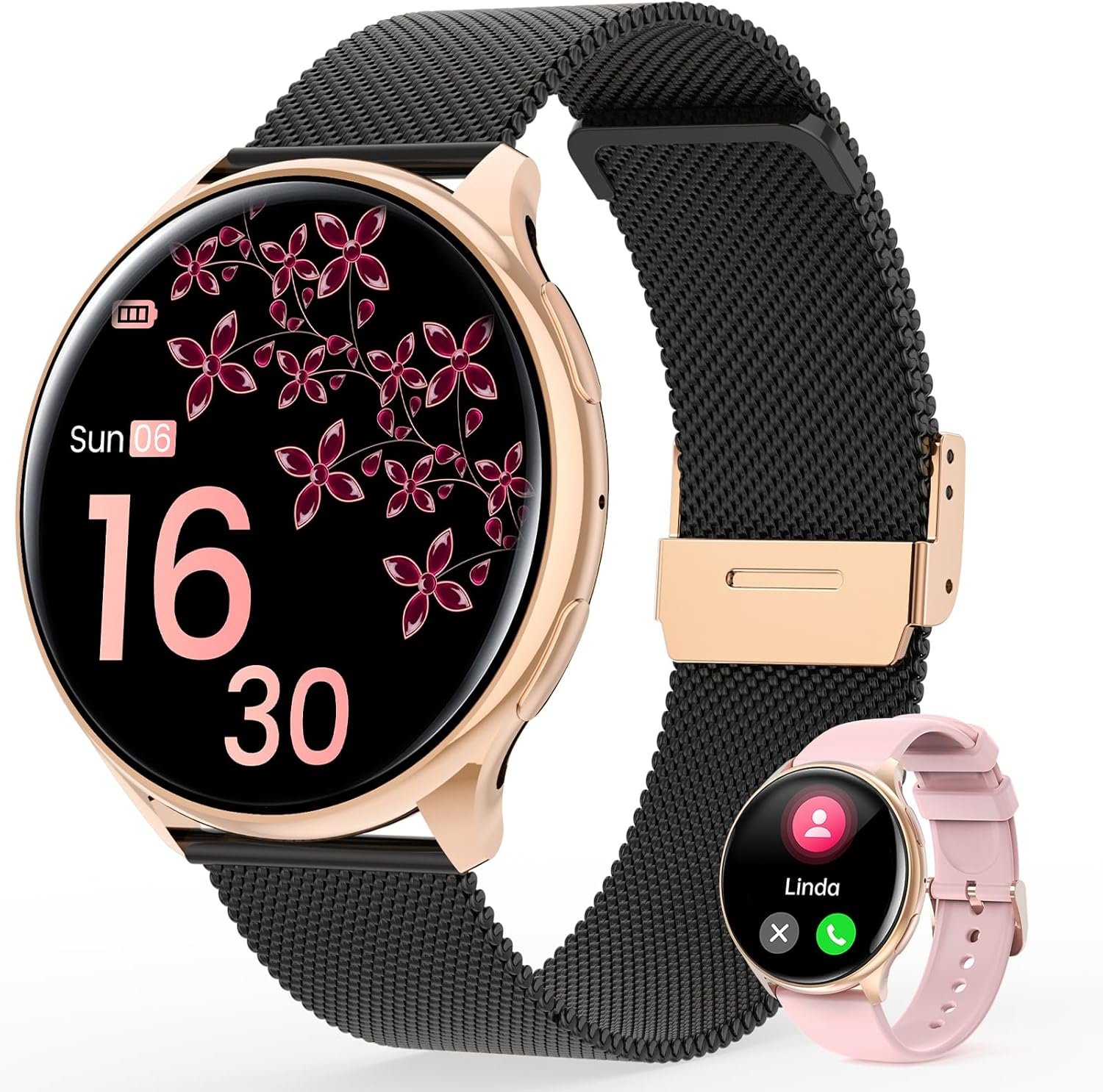 Stylish and Simple Black Gold Watch : RifePhi latest classic women’s smart watch, with 1.39-inch large full-screen touch screen with 2.5D curved glass and 360X360 ultra-high resolution, whether in a dark environment or strong light, it can clearly read the information, so that you have a comfortable reading visual effect, the small and lightweight body will not feel like wearing on the hand, suitable for women to wear for a long time. Combining elegance and simplicity, with the Milanese strap, your wrist will be a little more colorful