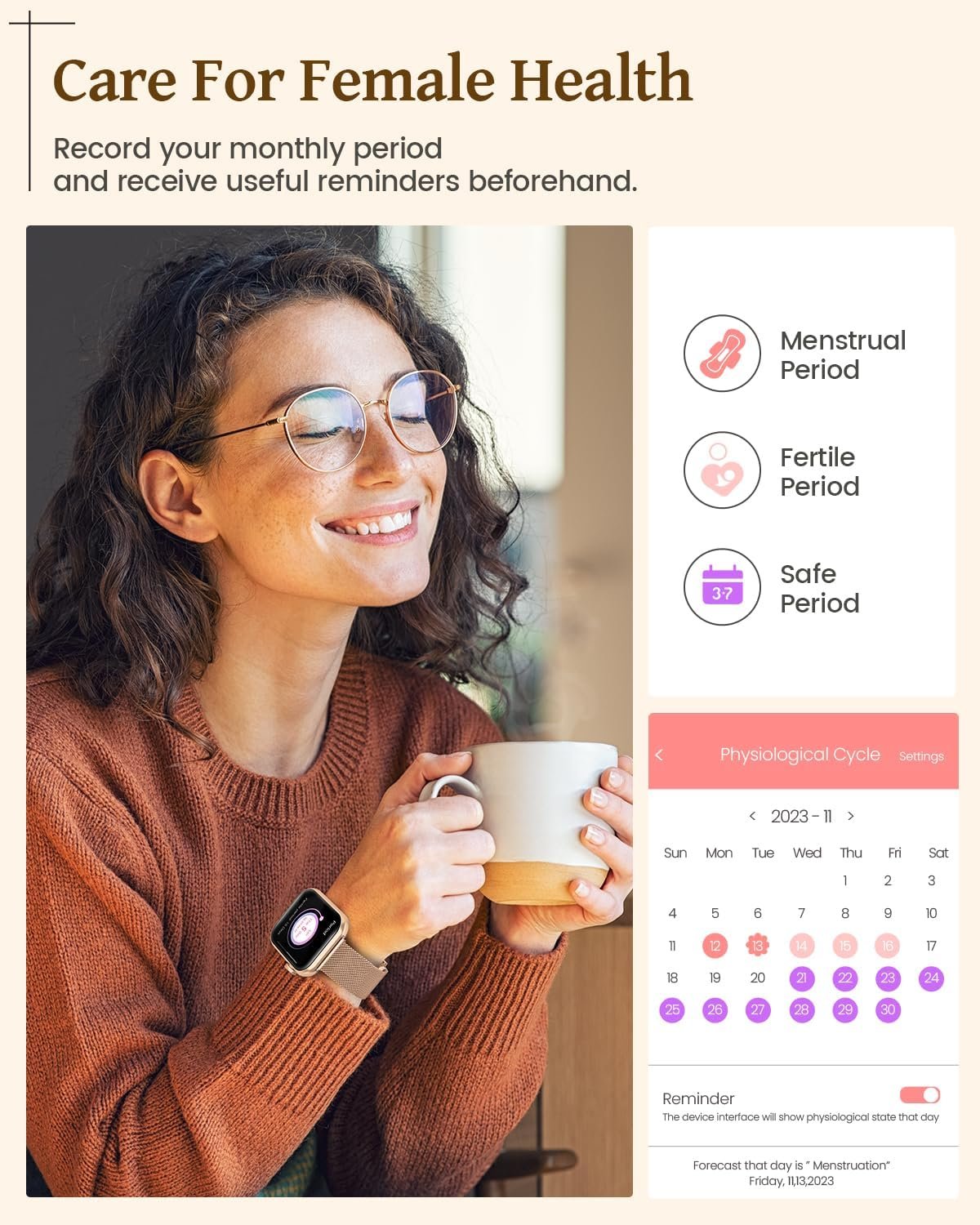 Yes, This fitness watch not only monitors blood pressure, but also adds new functions such as menstruation recording.