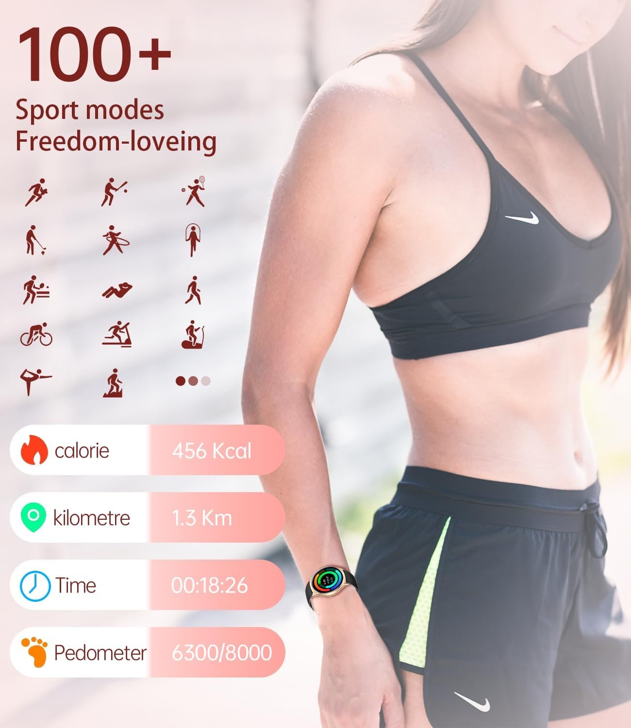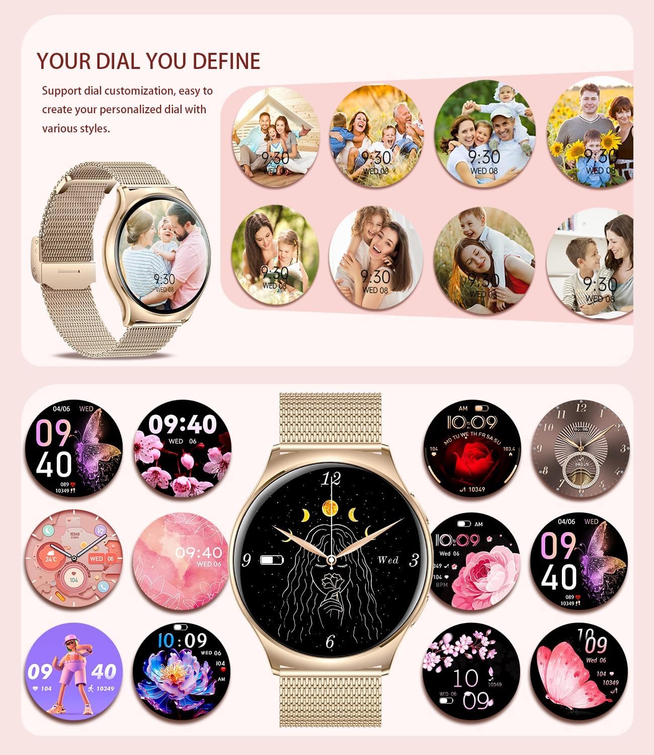 【INTIMATE CARE&RECORD WITH HEART】To protect women’s health, this smartwatch is designed for women, which can record menstrual period, ovulation period and female safe period, remind you of menstruation in advance, and provide intimate companionship every day. This stylish watches for women combines health and fashion, a perfect gift for you and your loved ones.