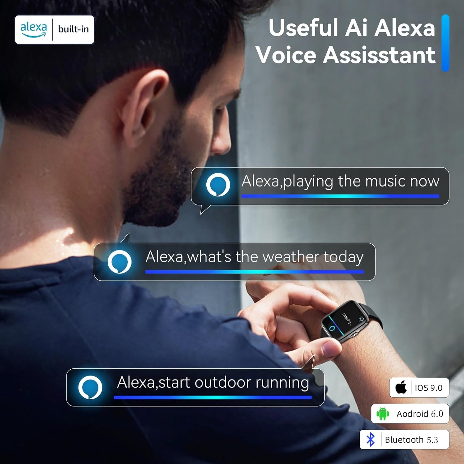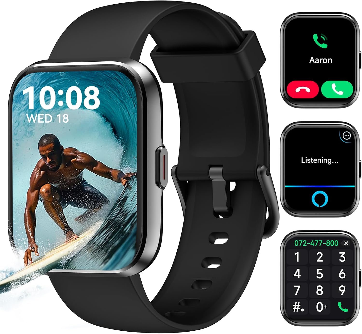 Tailored for fitness but goes beyond just that: The smartwatch boasts a range of features, including Built-in Alexa, Bluetooth calls, SMS and message notifications, Medication reminders, Calculator, Flashlight, Music and Camera control, Alarms, and more