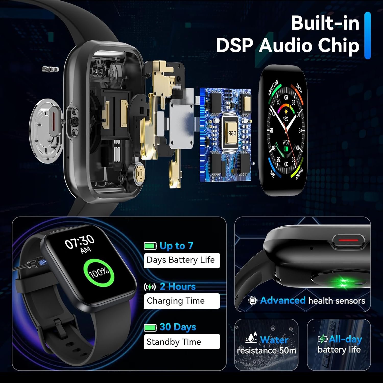 Our smart watches 3-Year Service: The health smart watches features a large-capacity, low-power battery with a battery life of 7-10 day and a standby time of 30 days; It comes with a fast magnetic charger, improving your efficiency in life,mother day gift