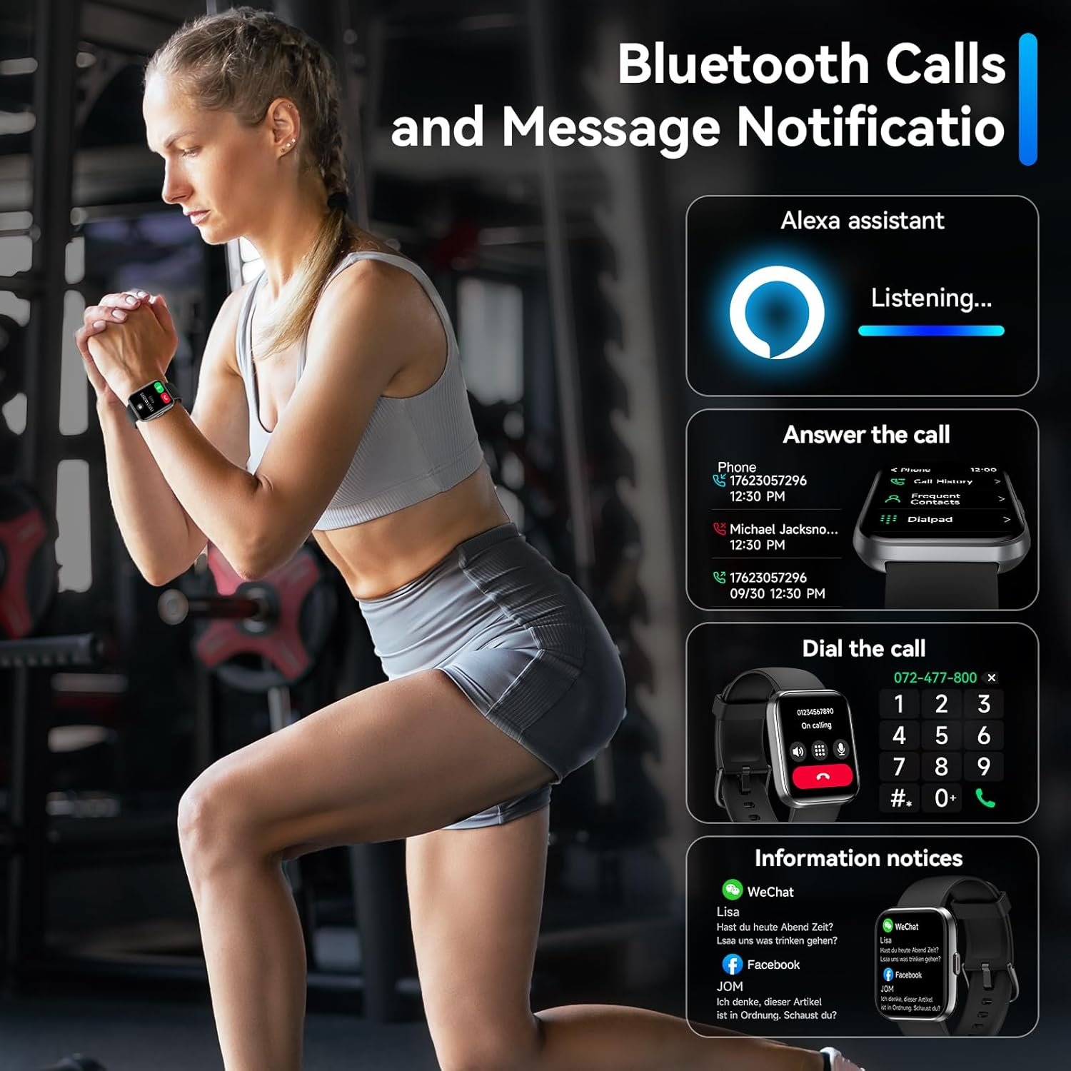 Our 2024 smart watches for women with its built-in speakers and bluetooth connectivity allow you to make and receive calls and ringtone reminders for incoming calls The android smartwatch also supports information reminders (Facebook, WhatsApp, Instagram, Twitter, etc. stores contacts and views call history Alexa can be activated at any time you can check real-time weather and change your music on the smart watch
