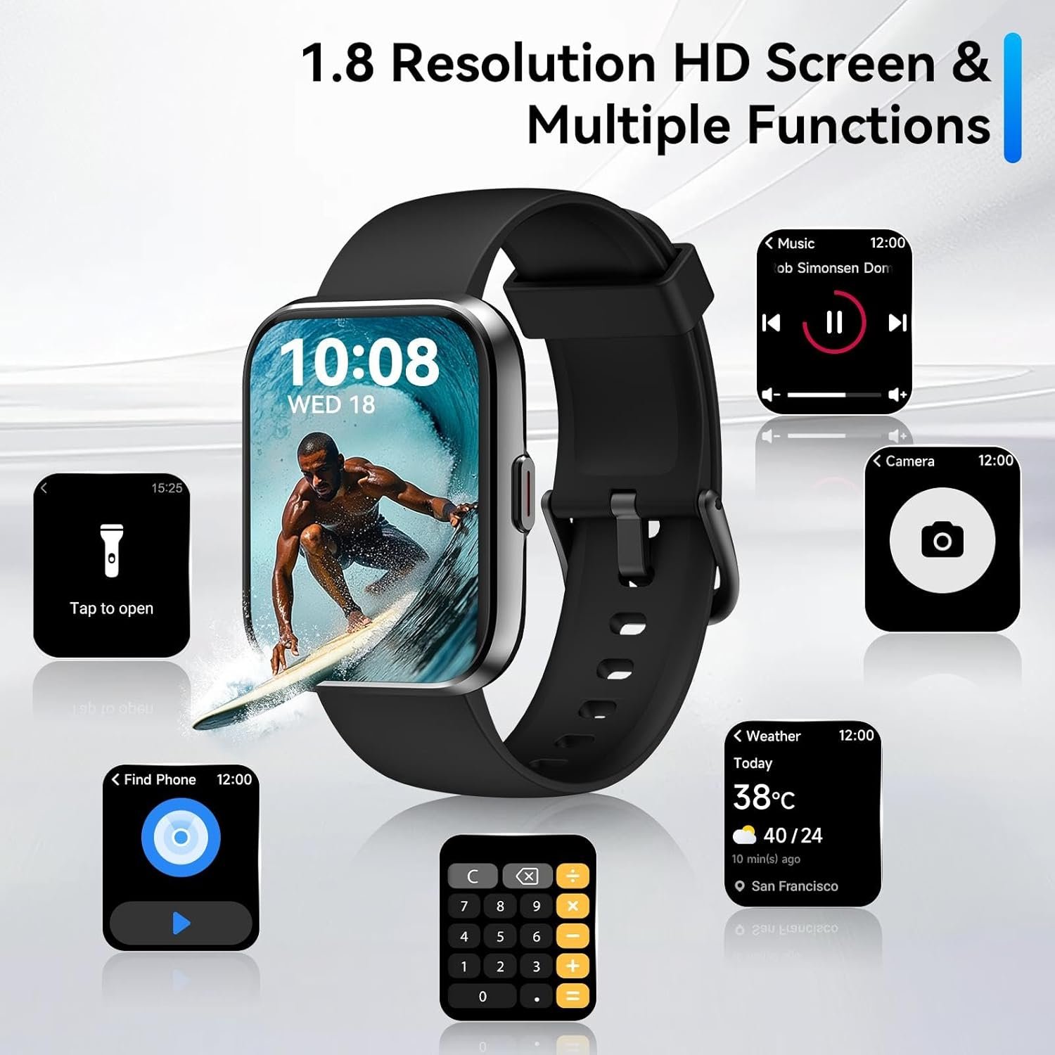 The 1.8-inch screen makes the watch not too big to be elegant and not too small to be readable.With the LCD screen, ultra-narrow black edges, giving the watch a more open display interface, the feeling of atmosphere and immersion.