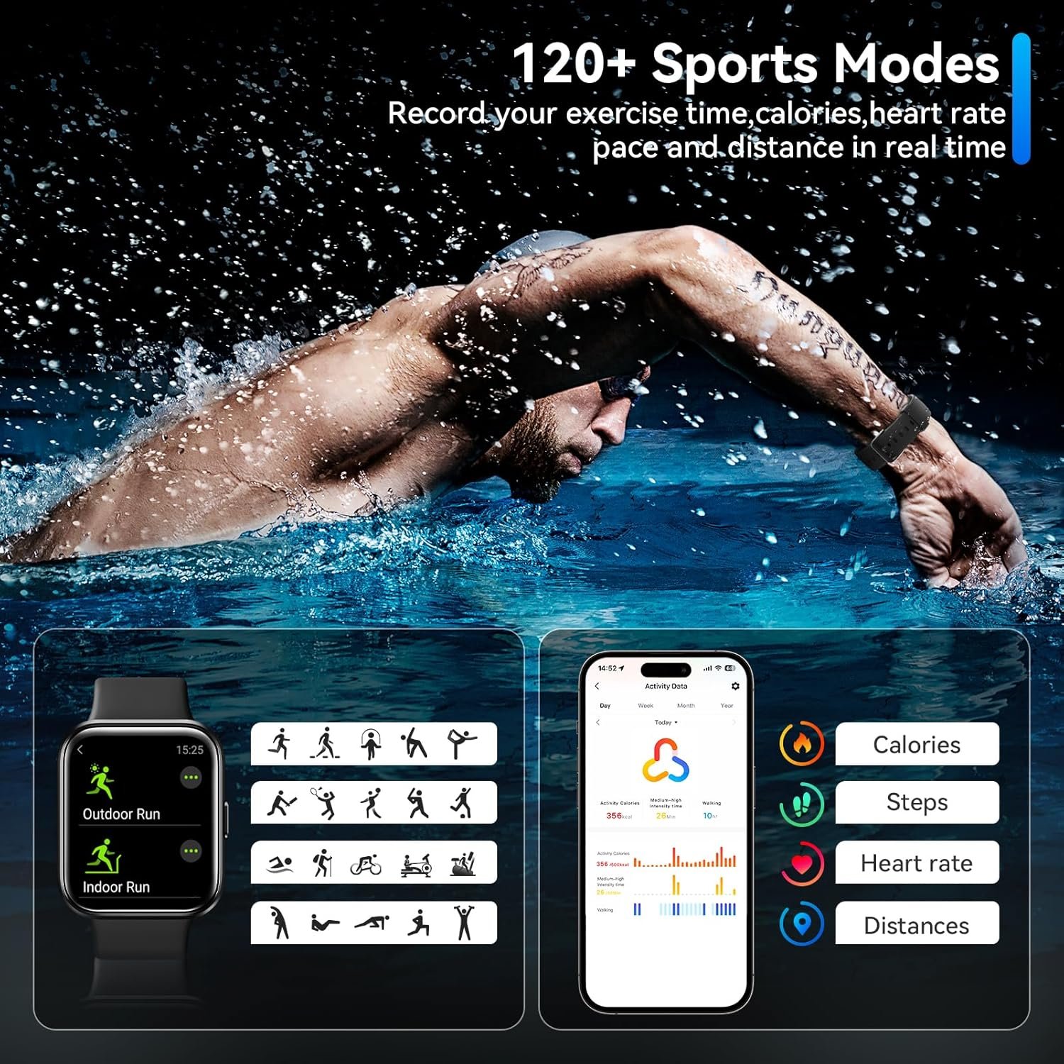 Track Your Fitness Journey with 120 Exercise Modes All-Day Activity Tracking