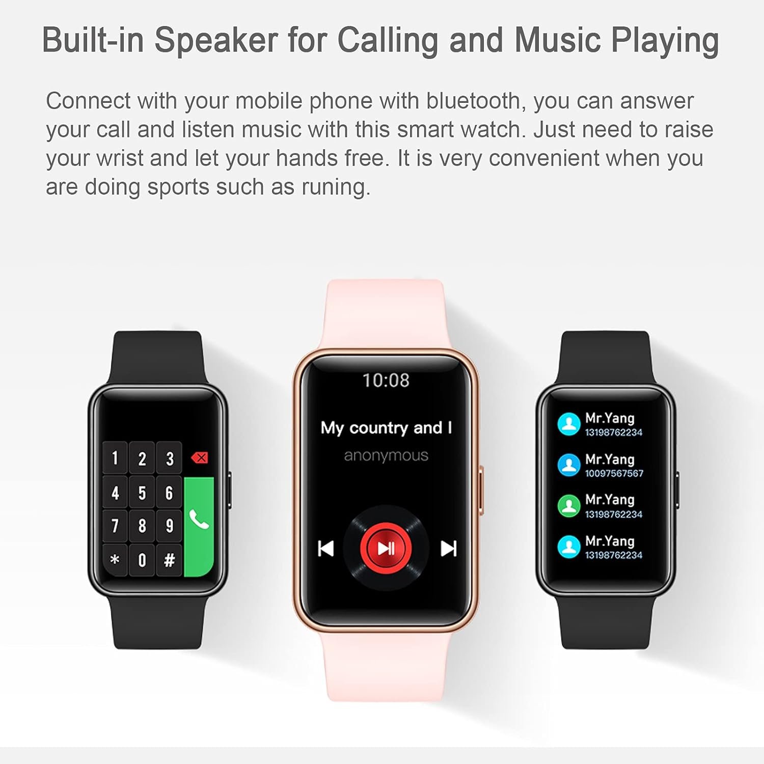 【Bluetooth Calling and Music Playing】You can connect your phone with this wearable watch, whatever your phone is Android or iOS system. With Bluetooth connection and built-in speaker, you can answer call or play music. Put your phone in your bag or pocket, let your hands free when you are walking or doing other chores.
