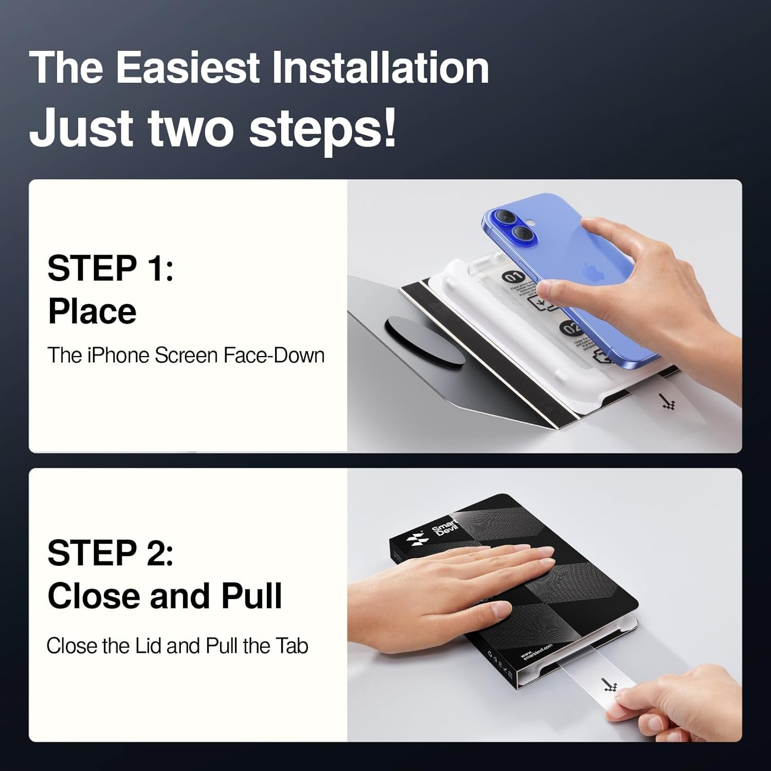 【Easy Installation and Smudge Free 】 First, place the screen facing down, press it onto the pull tab, then close the cover and hold it down to secure it, and finally fully pull out the pull tab.