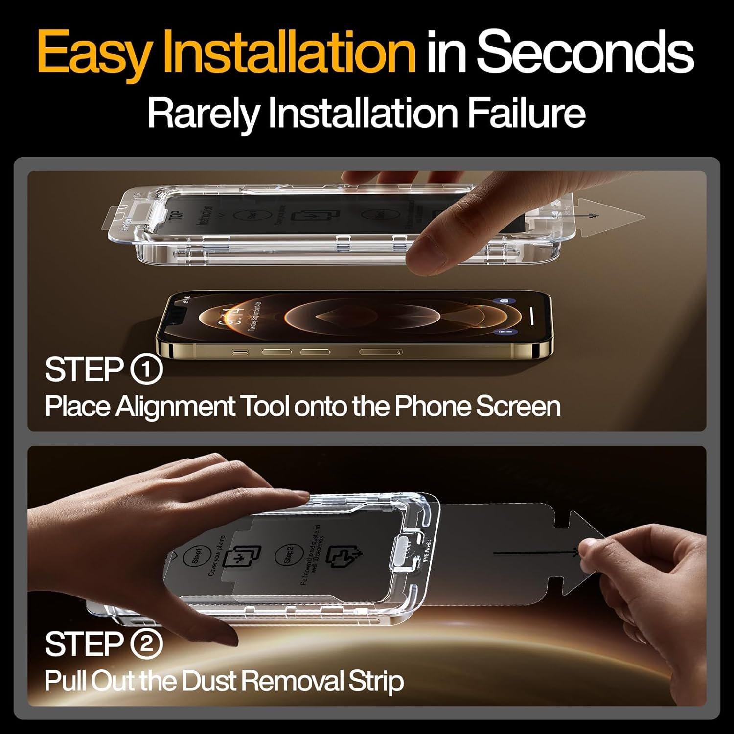 【Easy Installation and Smudge-Free】New installation design, the auto dust-elimination install tool will perfectly fits your mobile phone. The installation steps are simple and can be completed in just a few seconds. Automatically absorbs dust, no bubbles and no defects. Never before has such a silky-smooth installation experience, imagined with advanced technology and design.