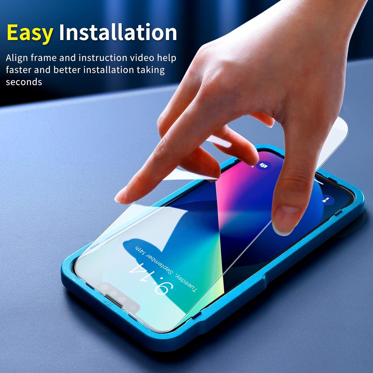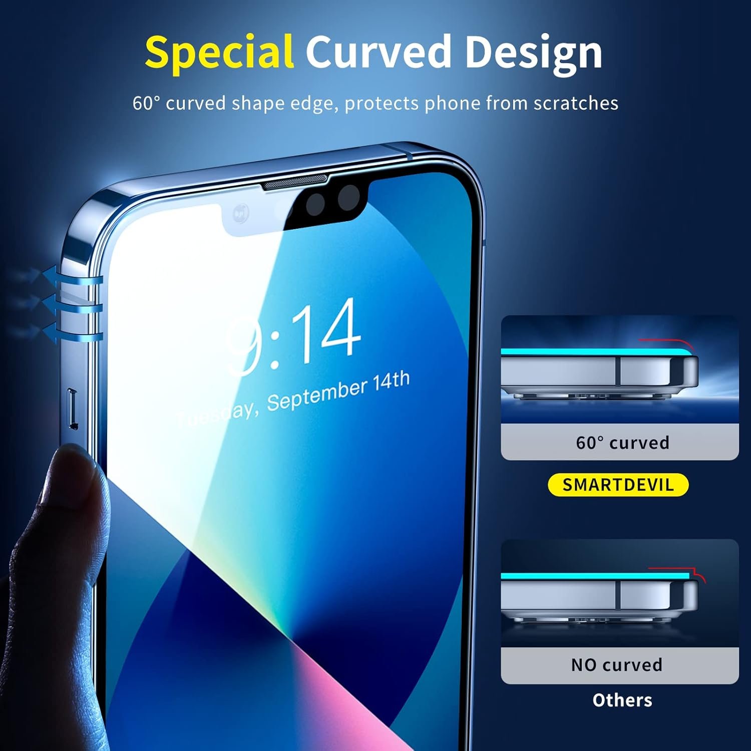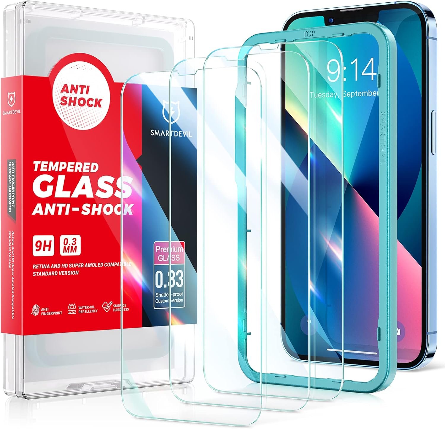 【EASY TO INSTALL】: With breakthrough uniquely electrostatic edges adsorption technology, SmartDevil tempered glass for iPhone 14/iPhone 13/13 Pro can fit perfectly in just 4 seconds, and quickly exhaust to 0 BUBBLES. Unlike others with loose edges that easily cause air bubbles. Even beginners, seniors and toddler can look like professionals.