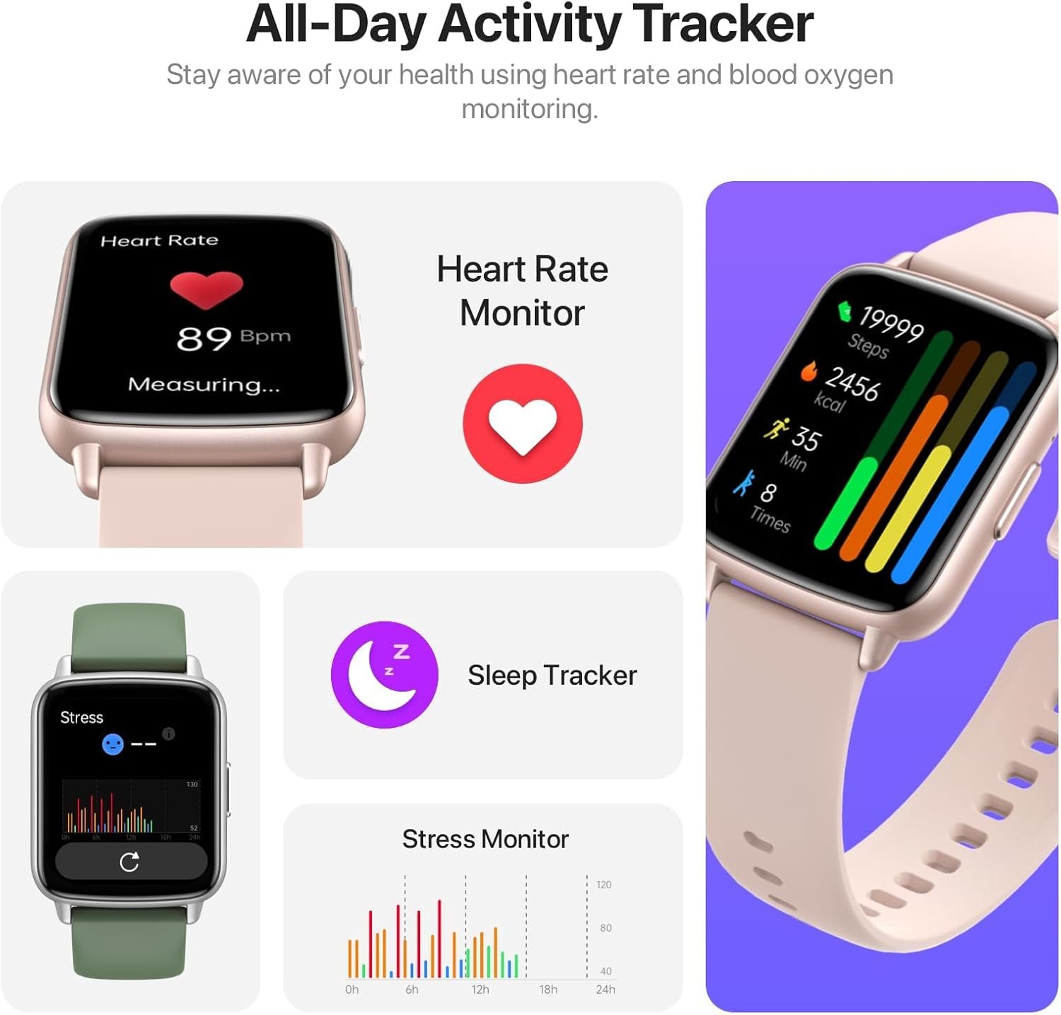 24/7 Health Monitor:Continuously track your heart rate, blood oxygen levels, and stress. The smart watches also records sleep patterns, offering insights into REM and deep sleep, and syncs with women’s menstrual calendars for better health awareness