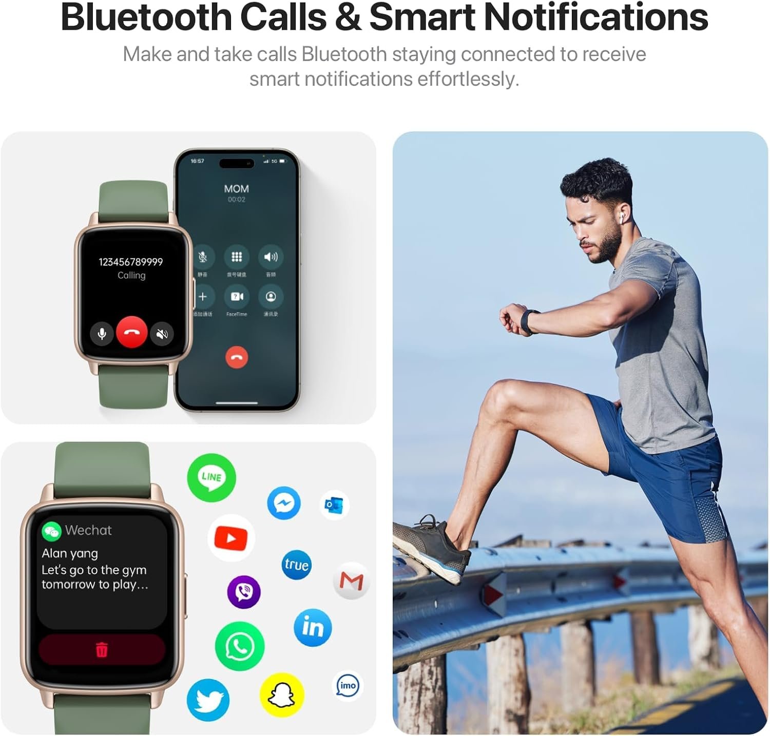 Smart Notifications and Fast Replies:Connected effortlessly with vibration alerts for android smart watch right on your wrist.Smart watch for iphone compatible, Preset responses without needing to pull out your phone, keeping you engaged and focused