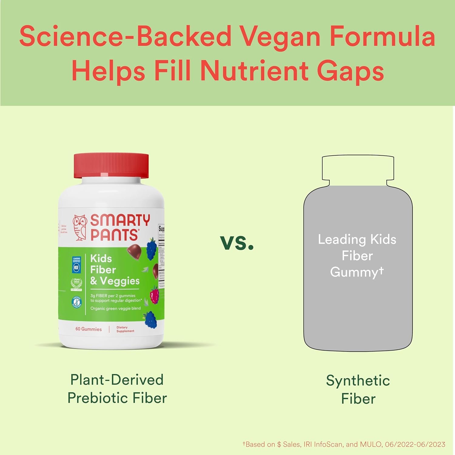 SCIENCE-BACKED FIBER GUMMIES FOR KIDS: SmartyPants Kids Fiber & Veggies is specifically formulated to support regular digestion* in kids 4+ with prebiotic dietary fiber, inulin, and an organic green veggie blend of organic kale, spinach, and broccoli