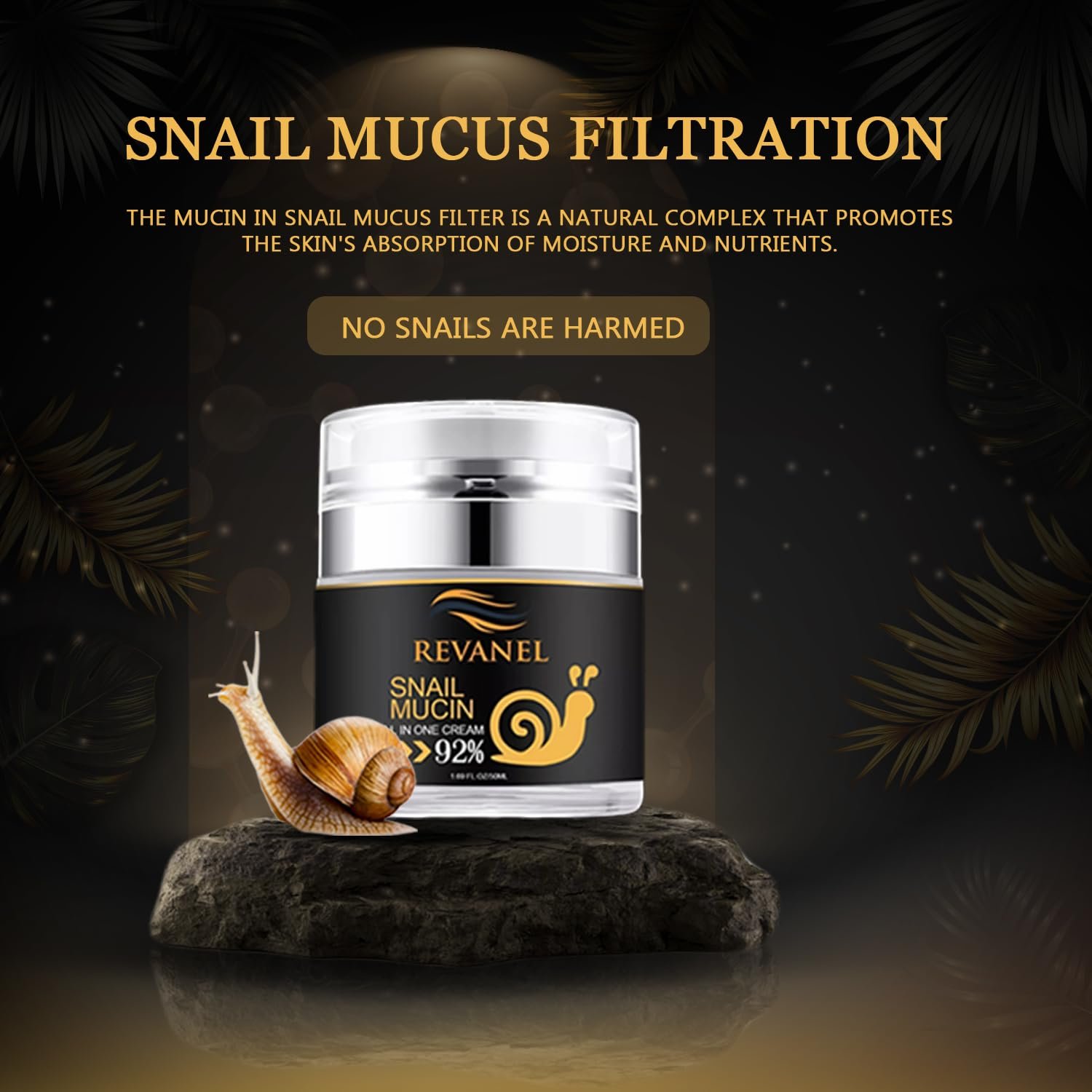Snail Mucin 92% All-in-One Repairing Cream, 50ml Ultimate Moisturizer for All Skin Types, Korean Skincare Product for Hydrating & Healing with No Parabens & Cruelty-Free.