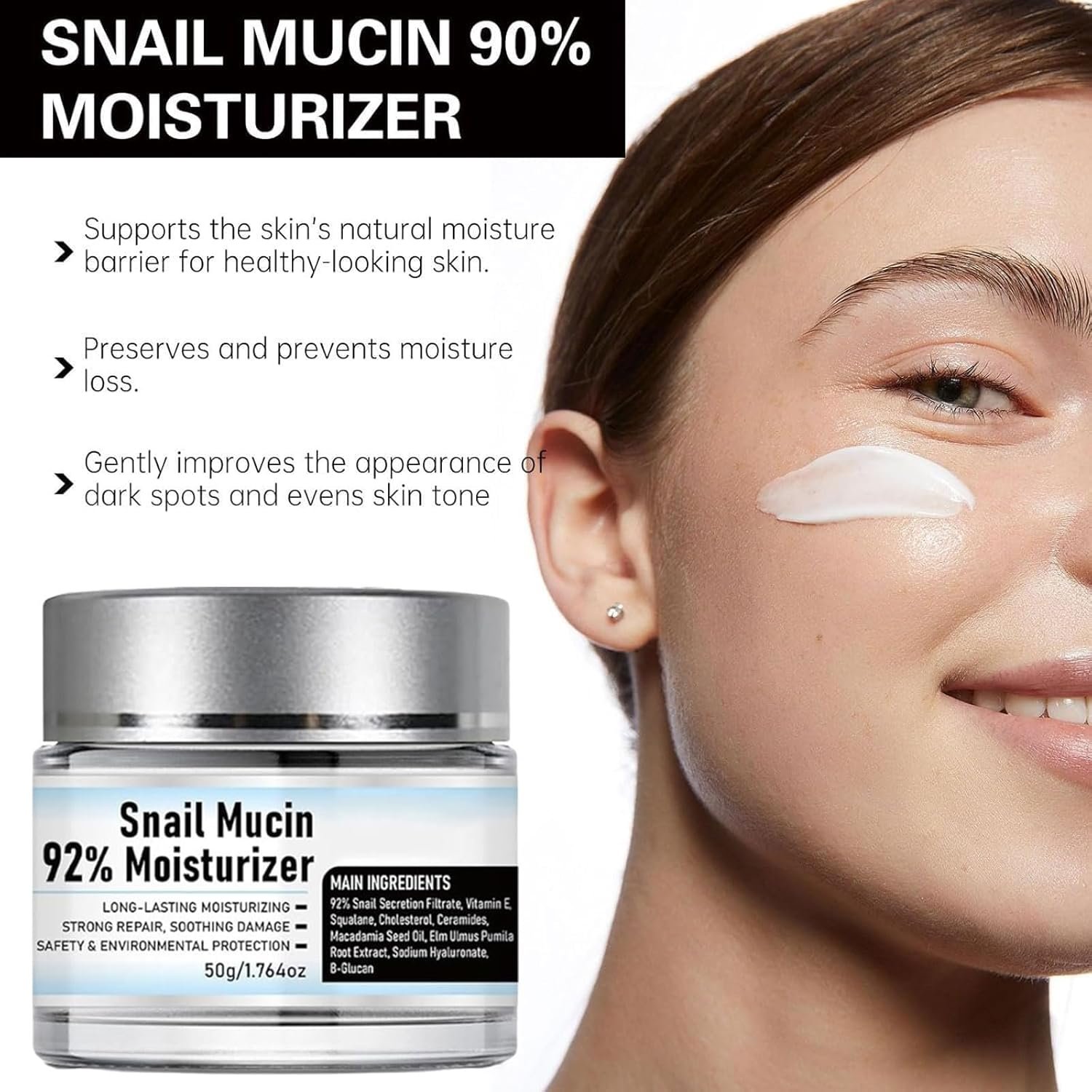 【Suitable for All Skin Types】Our snail mucin moisturizer cream is suitable for both day and night use, offering continuous skincare benefits, Helps prevent moisture loss and keep the skin hydration all day long. Suitable for dry skin and oily skin.