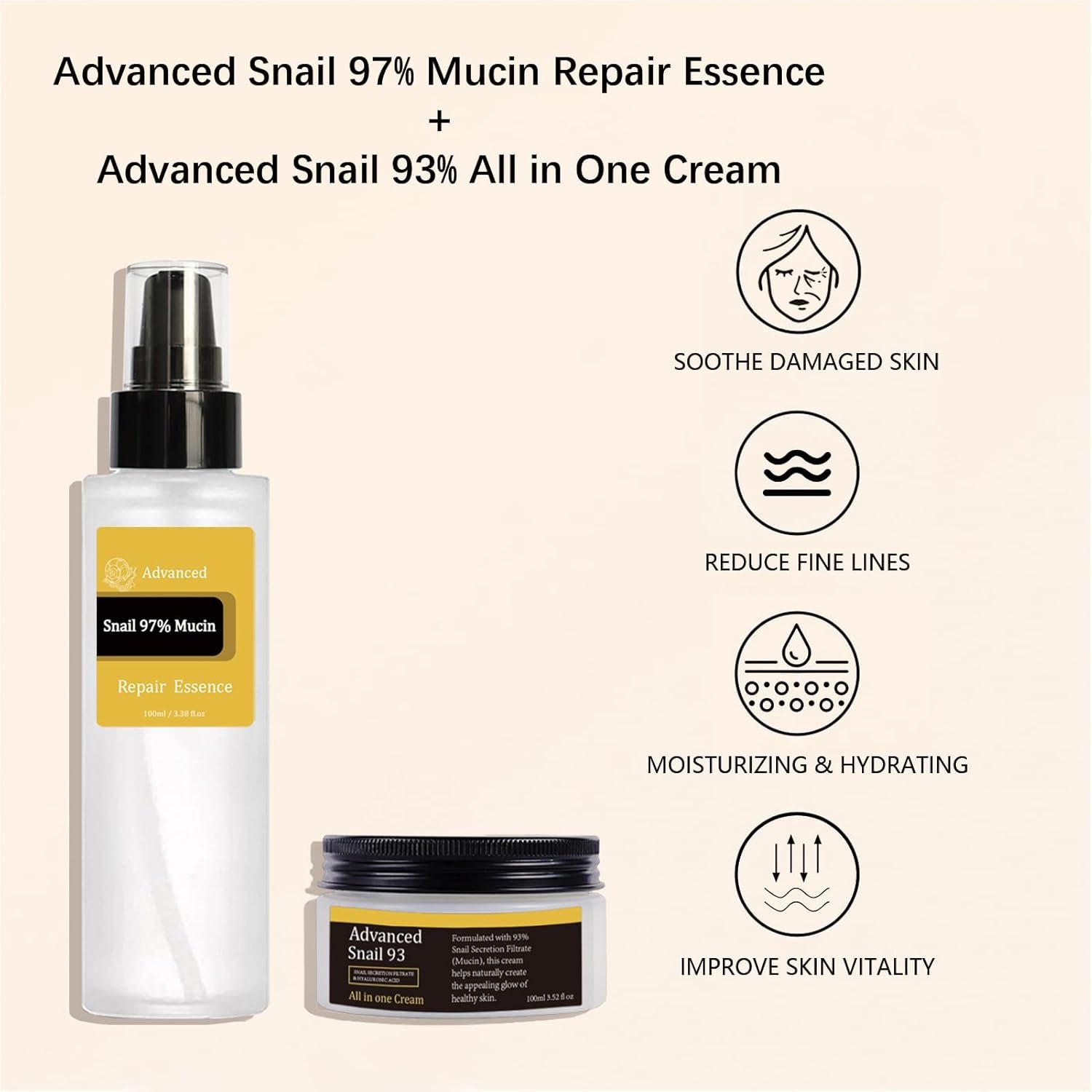 【Easy to Absorb】The snail essence set that absorbs quickly into the skin gives you a natural healthy glow. Provide long-lasting hydration without feeling heavy on the skin.