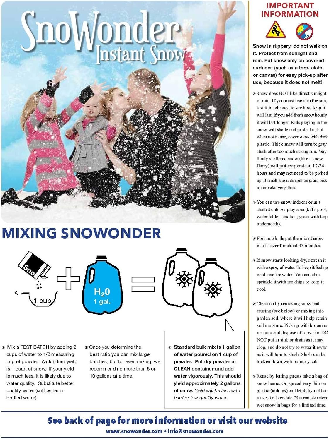 SnoWonder can be used year-round for snow play, holiday displays, special events, party favors, floral arrangements, the choices are endless.