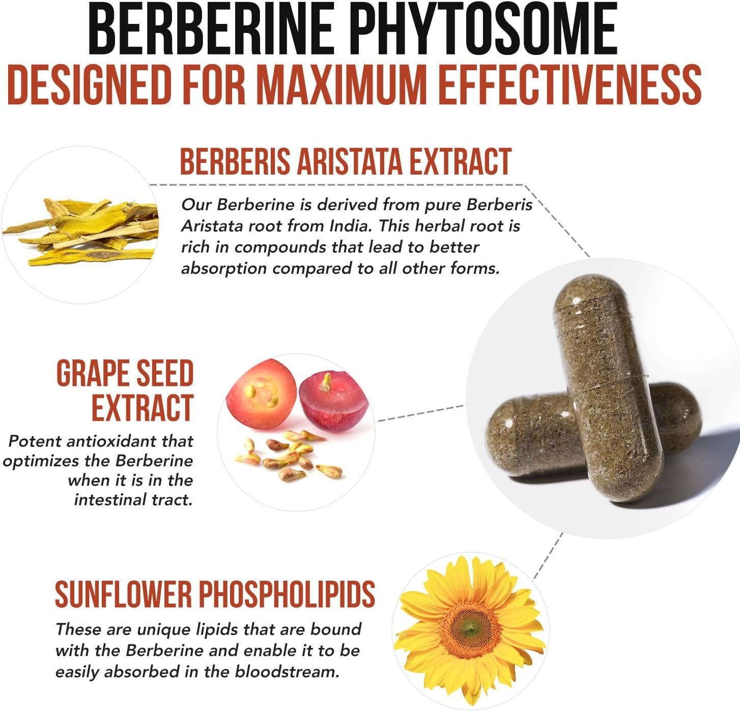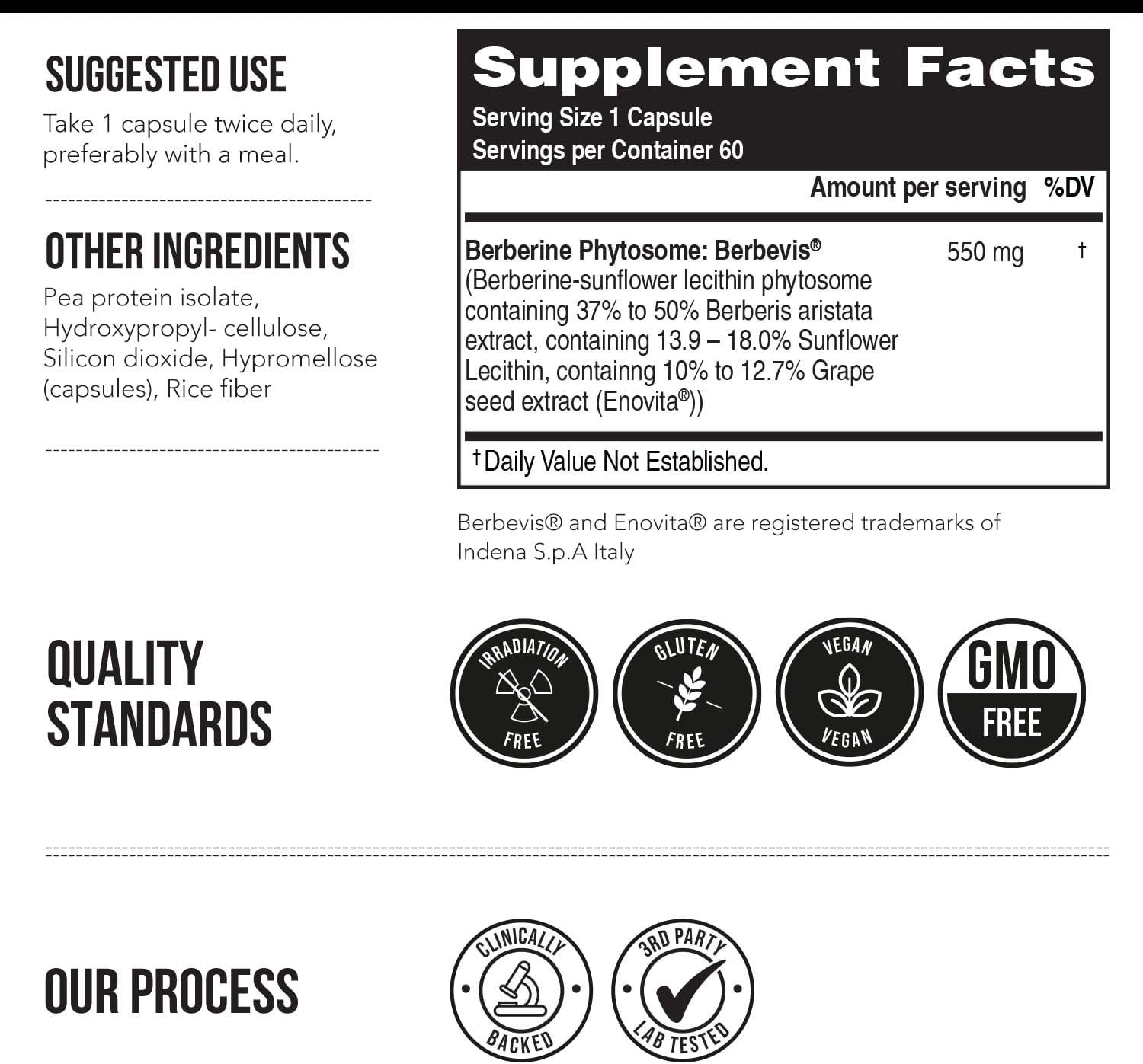 9.6X HIGHER ABSORPTION COMPARED TO STANDARD BERBERINE: In a clinical trial our Berberine phytosome was shown to have 9.6X (960%) higher absorption compared to standard Berberine.