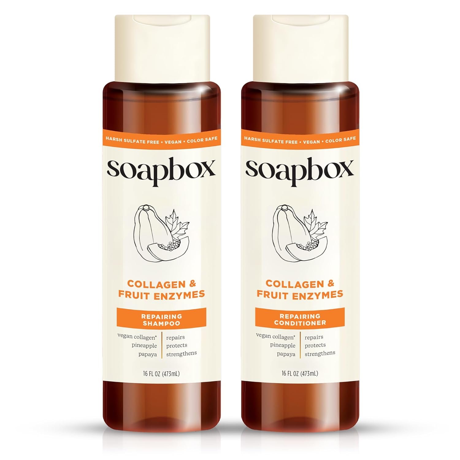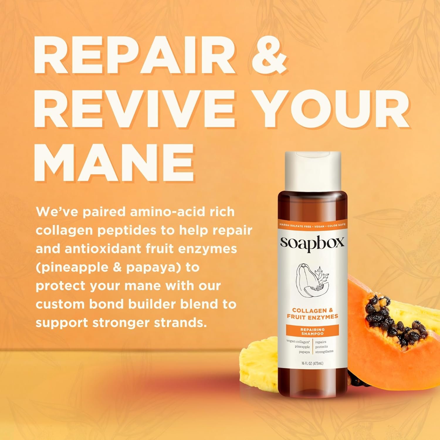 COLLAGEN SHAMPOO AND CONDITIONER bring a luxurious touch to your daily routine. We’ve paired amino acid rich collagen peptide with natural pineapple and papaya antioxidant fruit enzymes to help strengthen your hair’s bonds and protect against further damage. Our formula is gentle enough for all hair types for men and women.