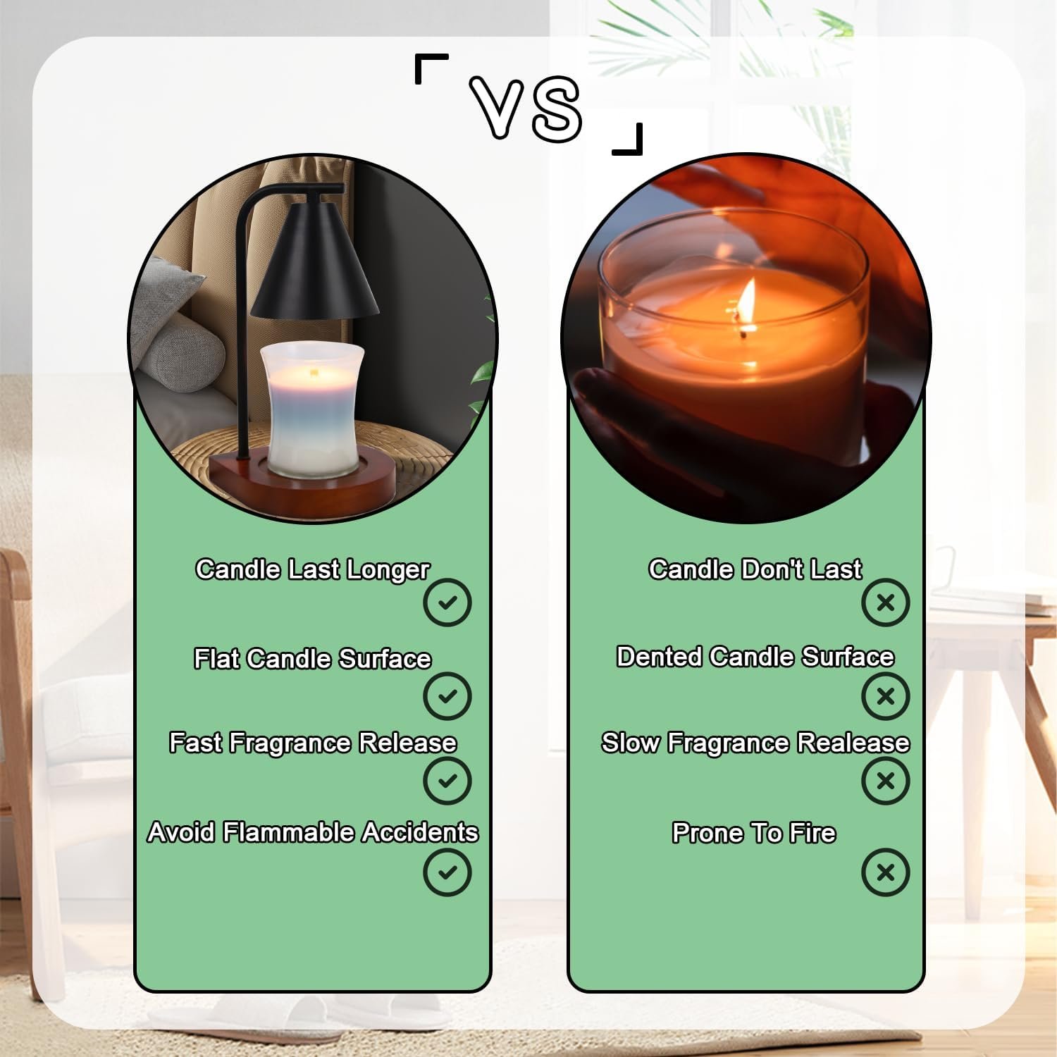 High-Quality: SOKCVSEA Candle Warmer Lamp is made in a straightforward-style design, It adopts anti-oxidation, double-layer plating or baking paint technology. SOKCVSEA Candle Warmers Lamp will not rust and fade even after long-term use with the high quality metal lamp pole, anti-corrosion, quick heat dissipation, smooth and safe hold, smooth natural walnut base with anti-slip mat make sure the lamp sturdy and stable more to be used.