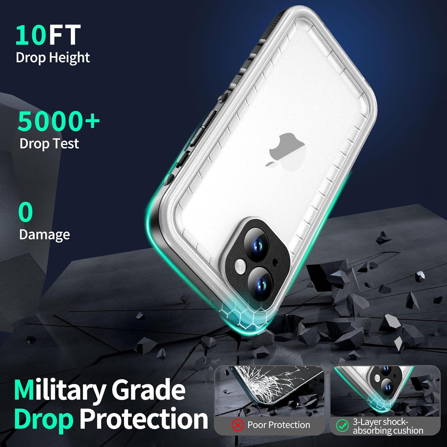 𝐁𝐮𝐢𝐥𝐭-𝐢𝐧 𝐒𝐜𝐫𝐞𝐞𝐧 & 𝐂𝐚𝐦𝐞𝐫𝐚 𝐏𝐫𝐨𝐭𝐞𝐜𝐭𝐨𝐫: This Shockproof Phone Case passed over 5000+ Military Grade 𝟭𝟬𝗙𝗧 𝗗𝗿𝗼𝗽 Tests. 𝐌𝐮𝐥𝐭𝐢-𝗦𝗵𝗼𝗰𝗸𝗽𝗿𝗼𝗼𝗳 Design: Bulit-in 𝐒𝐜𝐫𝐞𝐞𝐧 𝐏𝐫𝐨𝐭𝐞𝐜𝐭𝐨𝐫, HD 𝐂𝐚𝐦𝐞𝐫𝐚 𝐥𝐞𝐧𝐬 𝐏𝐫𝐨𝐭𝐞𝐜𝐭𝐨𝐫 cover, 𝟮𝗺𝗺 Screen 𝗥𝗮𝗶𝘀𝗲𝗱 𝗲𝗱𝗴𝗲𝘀 and 𝟯.𝟱𝗺𝗺 Camera Lips, durable matte 𝗵𝗮𝗿𝗱 𝗣𝗖 𝗯𝗮𝗰𝗸 and soft shock absorption 𝗧𝗣𝗨 𝗯𝘂𝗺𝗽𝗲𝗿 offer your phone 360-degree rugged protection to prevent accidental drops, impacts, and scratches