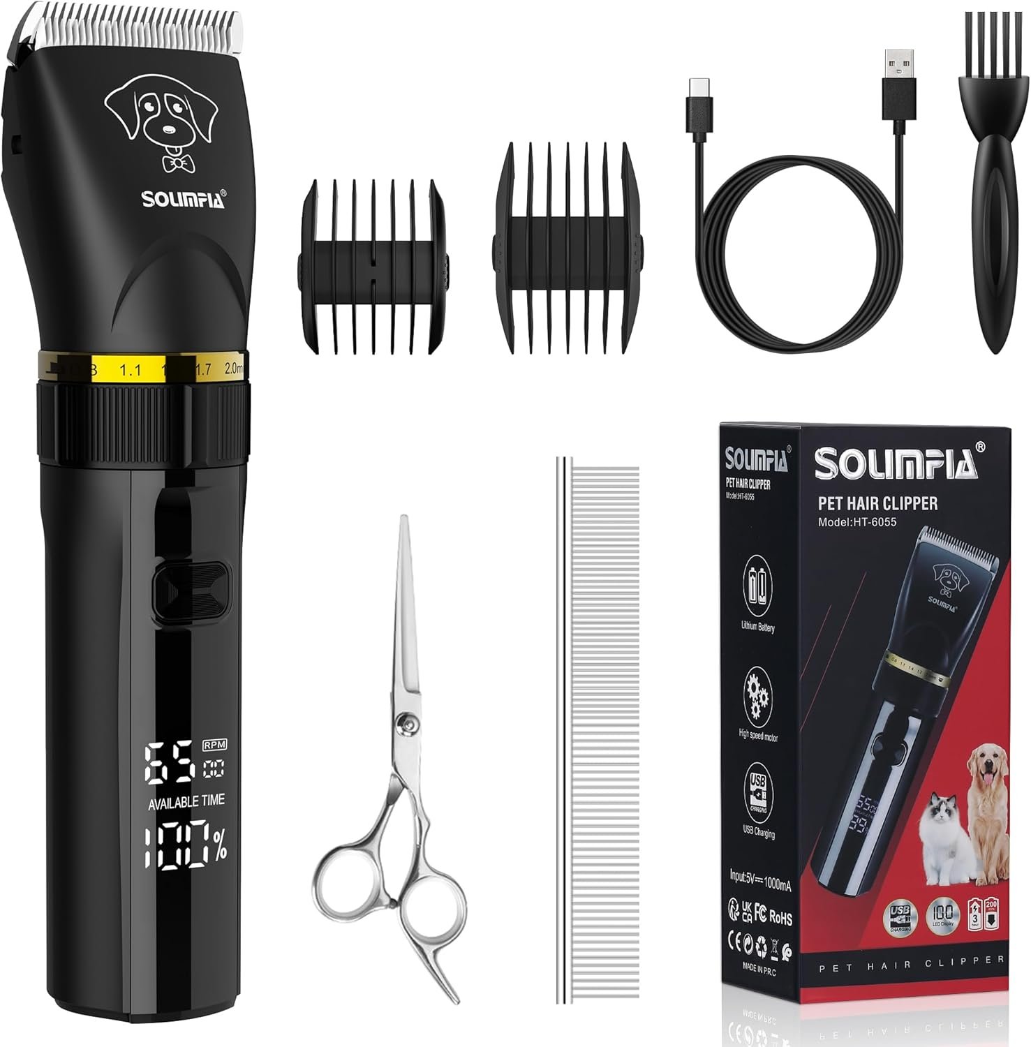 Solimpia Upgraded Dog Clippers, Dog Grooming Kit with LCD Display, Heavy Duty Dog Trimmer, Detachable Low Noise Rechargeable Cordless Electric Quiet Shaver Set for Dogs Cats Pets