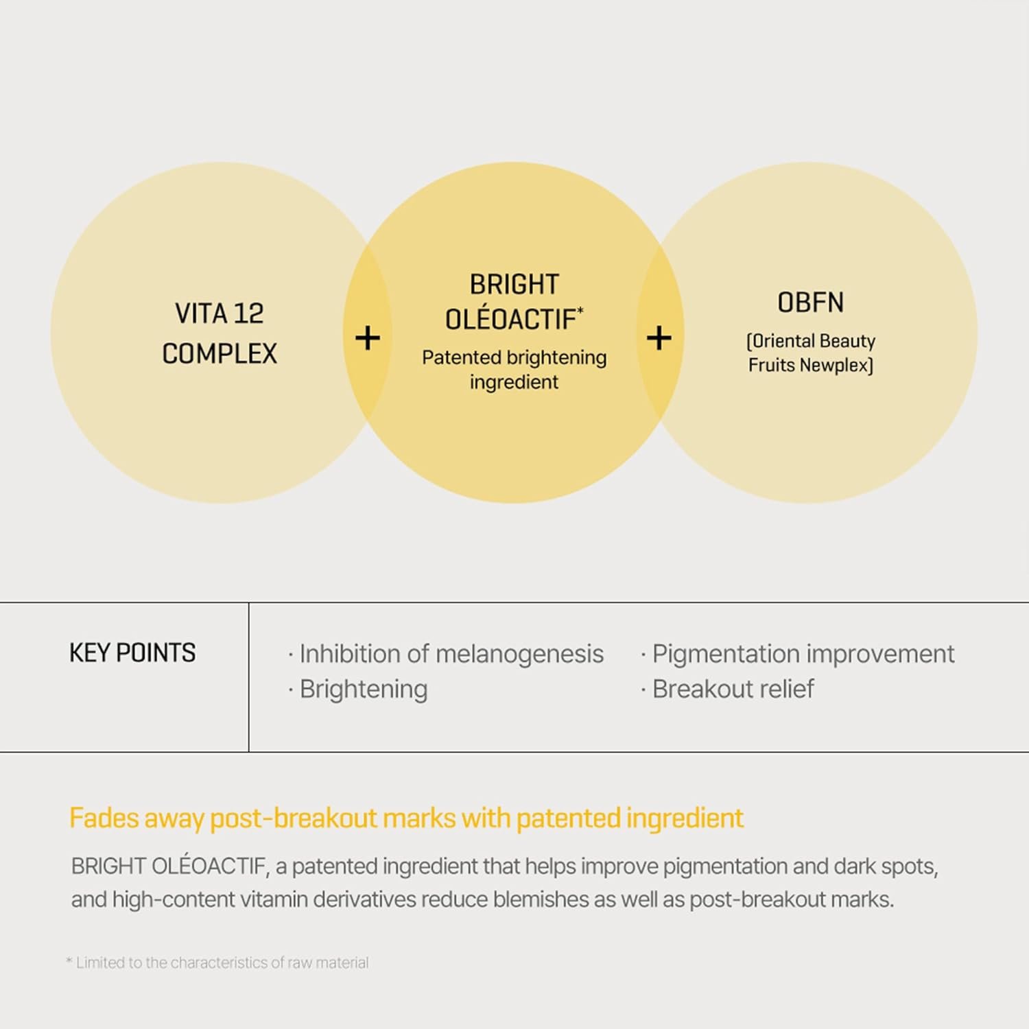 KEY INGREDIENTS : 10% of Niacinamide helps to improve the skin’s overall texture, minimize the appearance of pores, regulate oil production, and enhance the skin’s natural barrier function. 83% of Yuja extract contains natural fruit acids that can gently exfoliate the skin, promoting a smoother and brighter complexion. Additionally, The patented ingredient, BRIGHT OLÉOACTIF, functions to control sebum and reduce dark spots