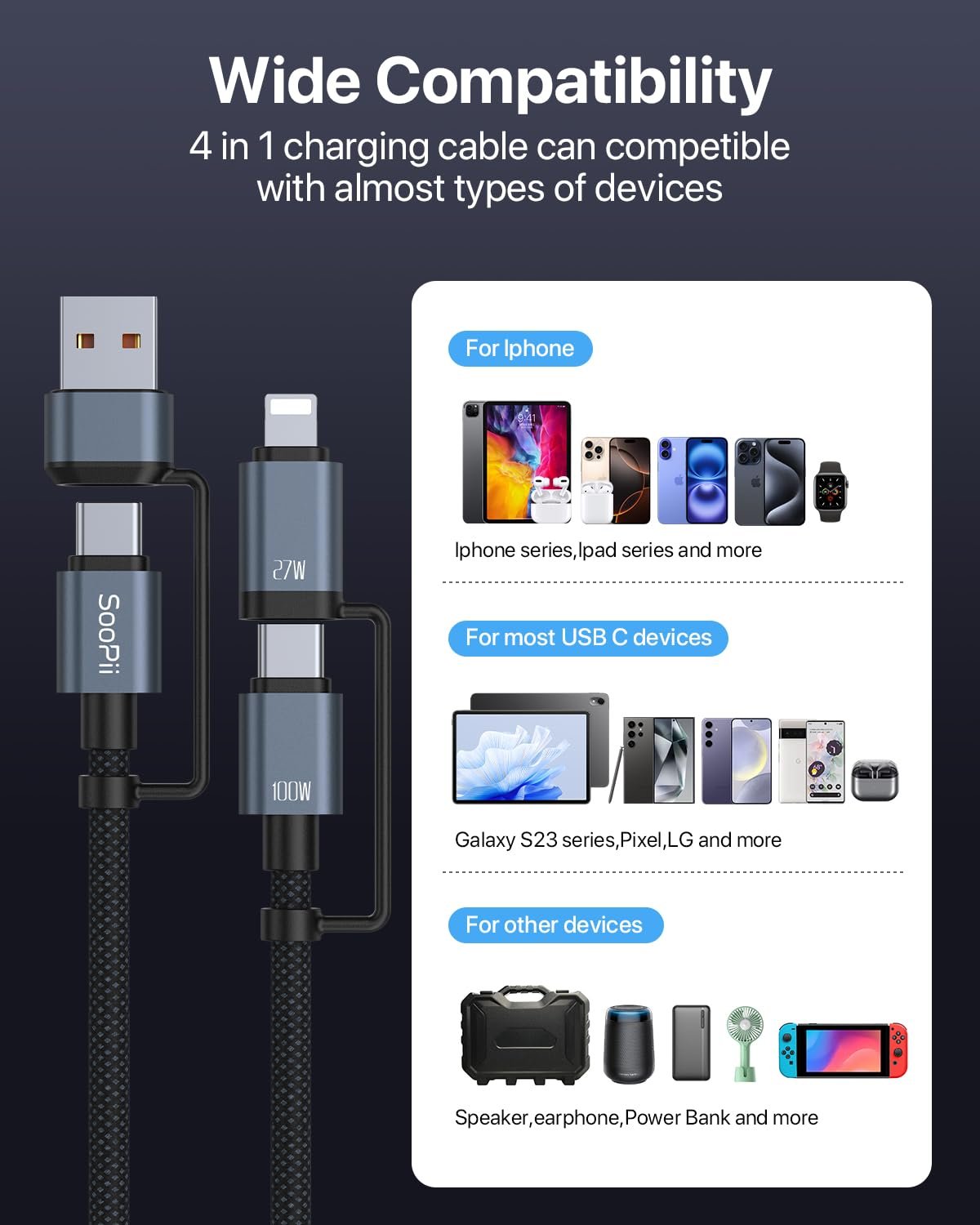 [What You Get] You will not only get 1pcs SooPii 4 in 1 charging cable,but also get 24 months warranty if there is any problems you meet.