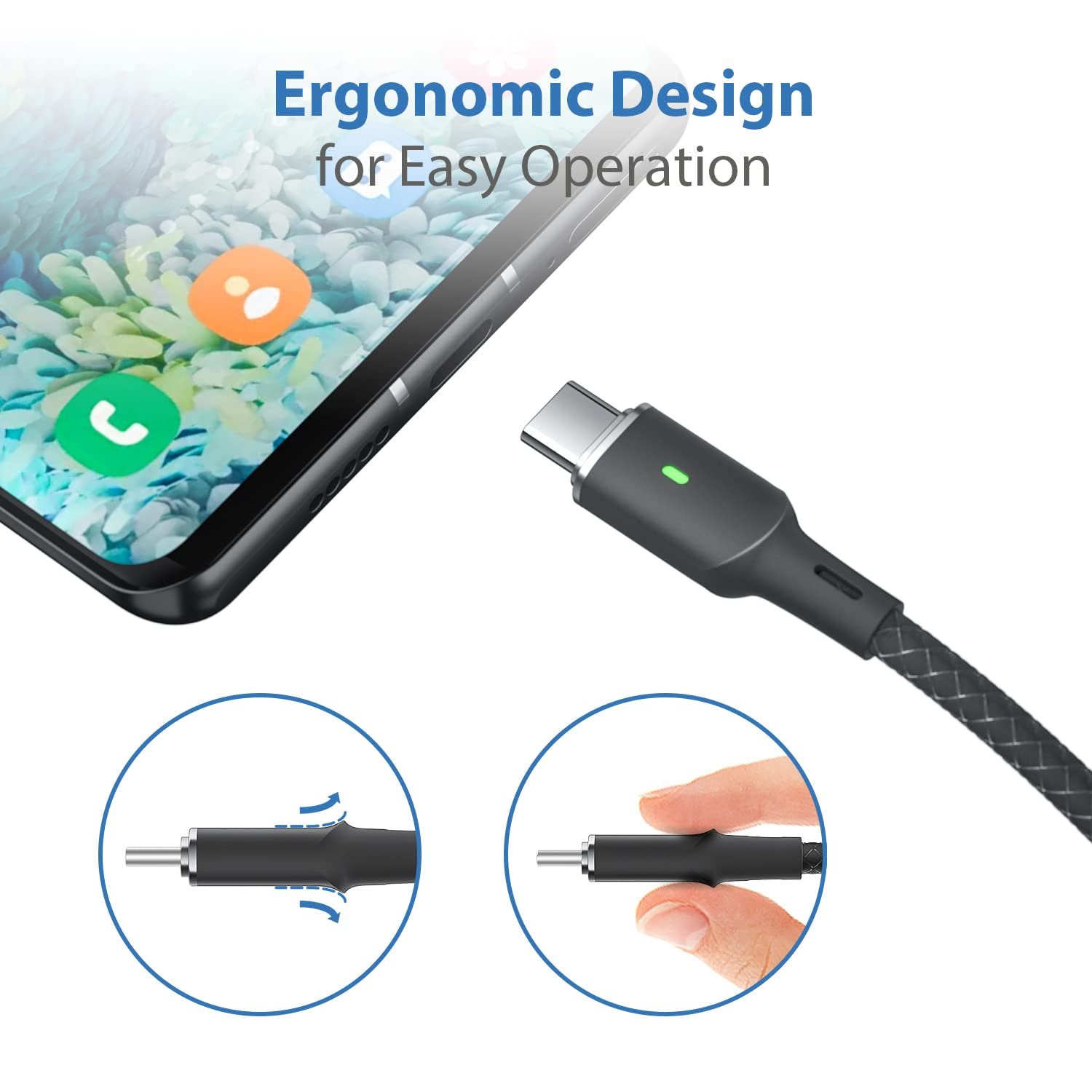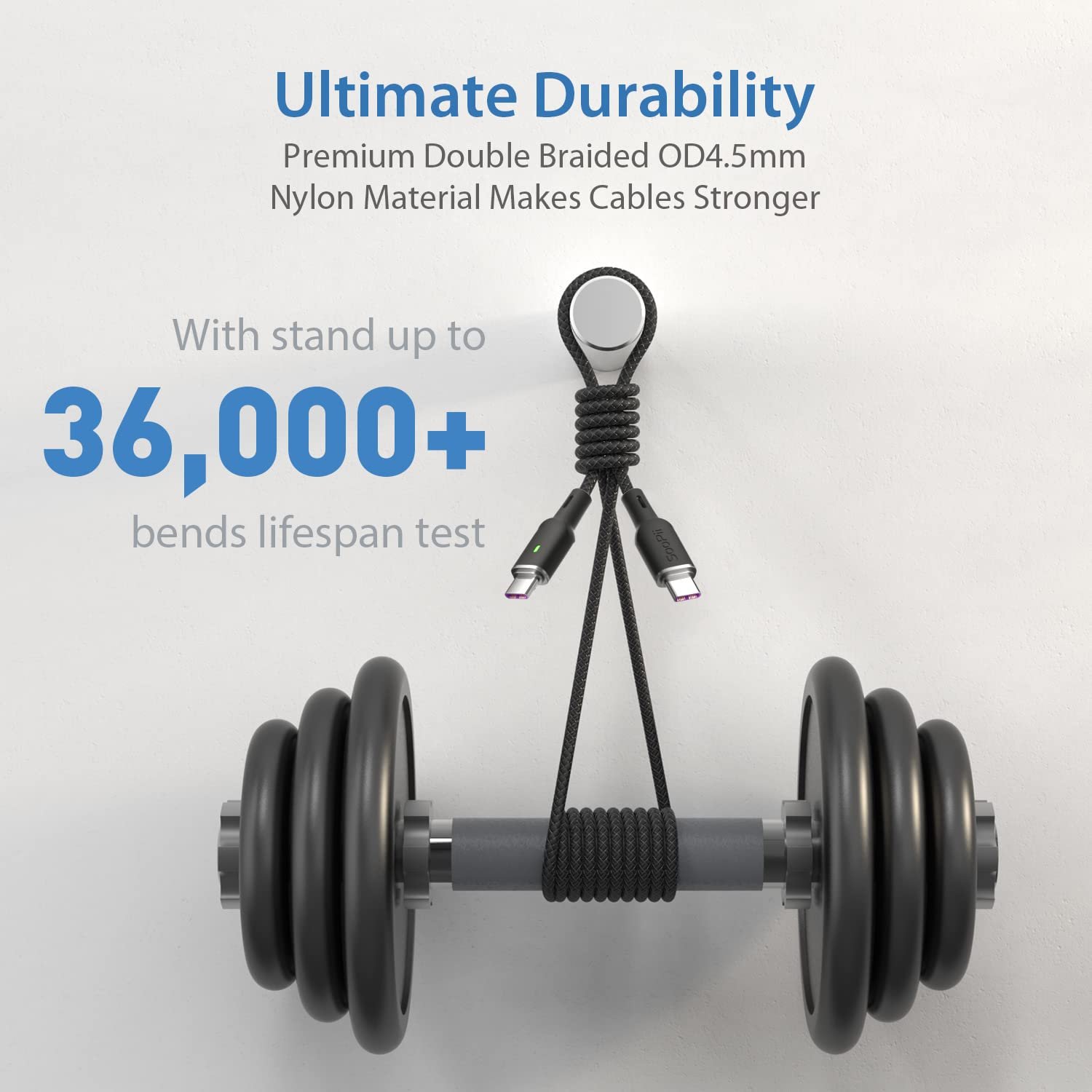 【Ergonomic Design & Ultimate Durability】Ergonomic Design for Easy Operation. Based on 36,000+ bends strict tests, with Flexible bionic joints design and OD4.5mm the most strong, powerful and premium double braided nylon material to resist damage from the outside, SooPii Type C charging Cable designed for longer service life and will never broken.
