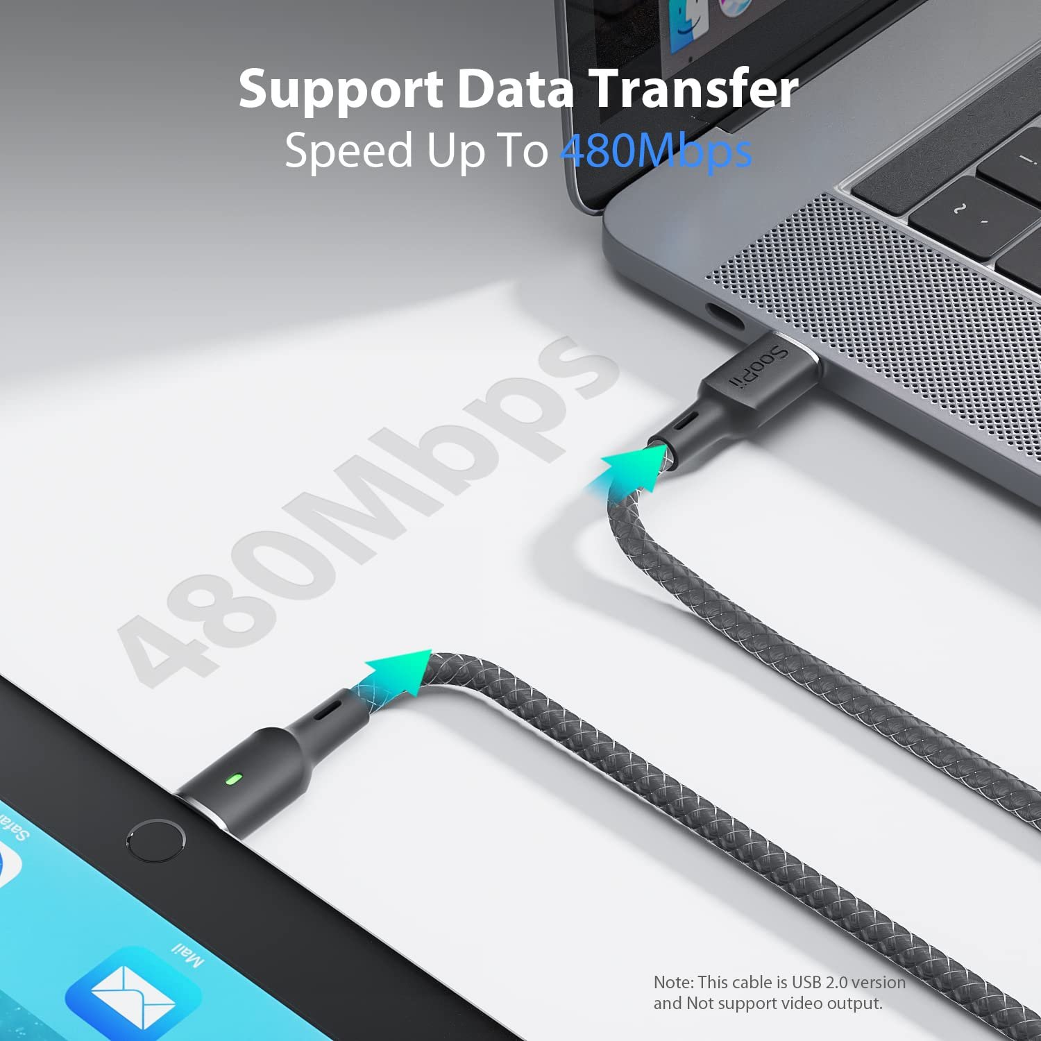 【Smart LED indicator & Safe Charge】 With a fashionable appearance and a nice green LED light, SooPii USB C cable stays solid green while charging,helps fast finding your device in the dark. Built-in smart chips monitoring the charging power and adjusting current and voltage automatically, avoiding damage to the battery in case of unstable current.