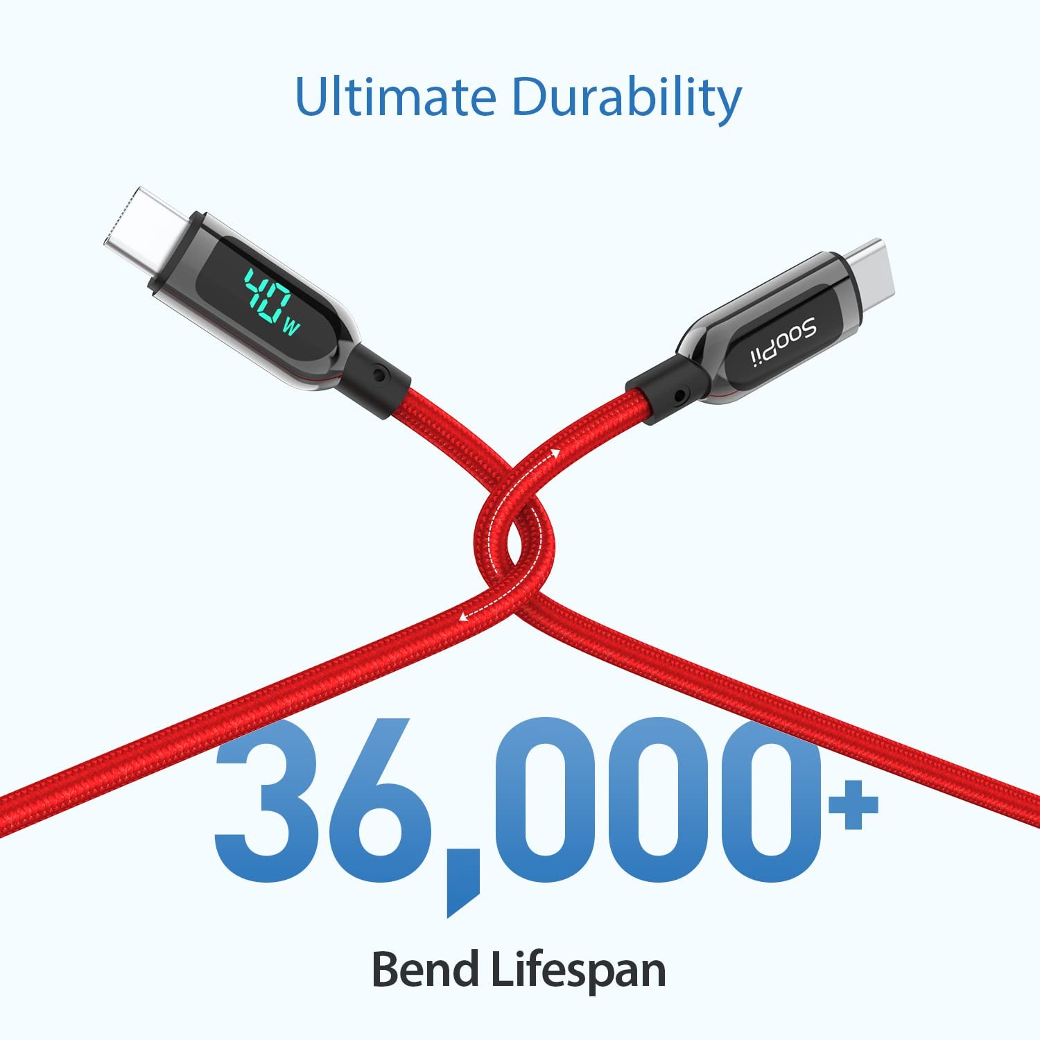 SooPii Charging Cables not just power up your devices with reliable and fast charging technology, also monitor the full charging process with built-in smart chips and Real-time LED display Visible.