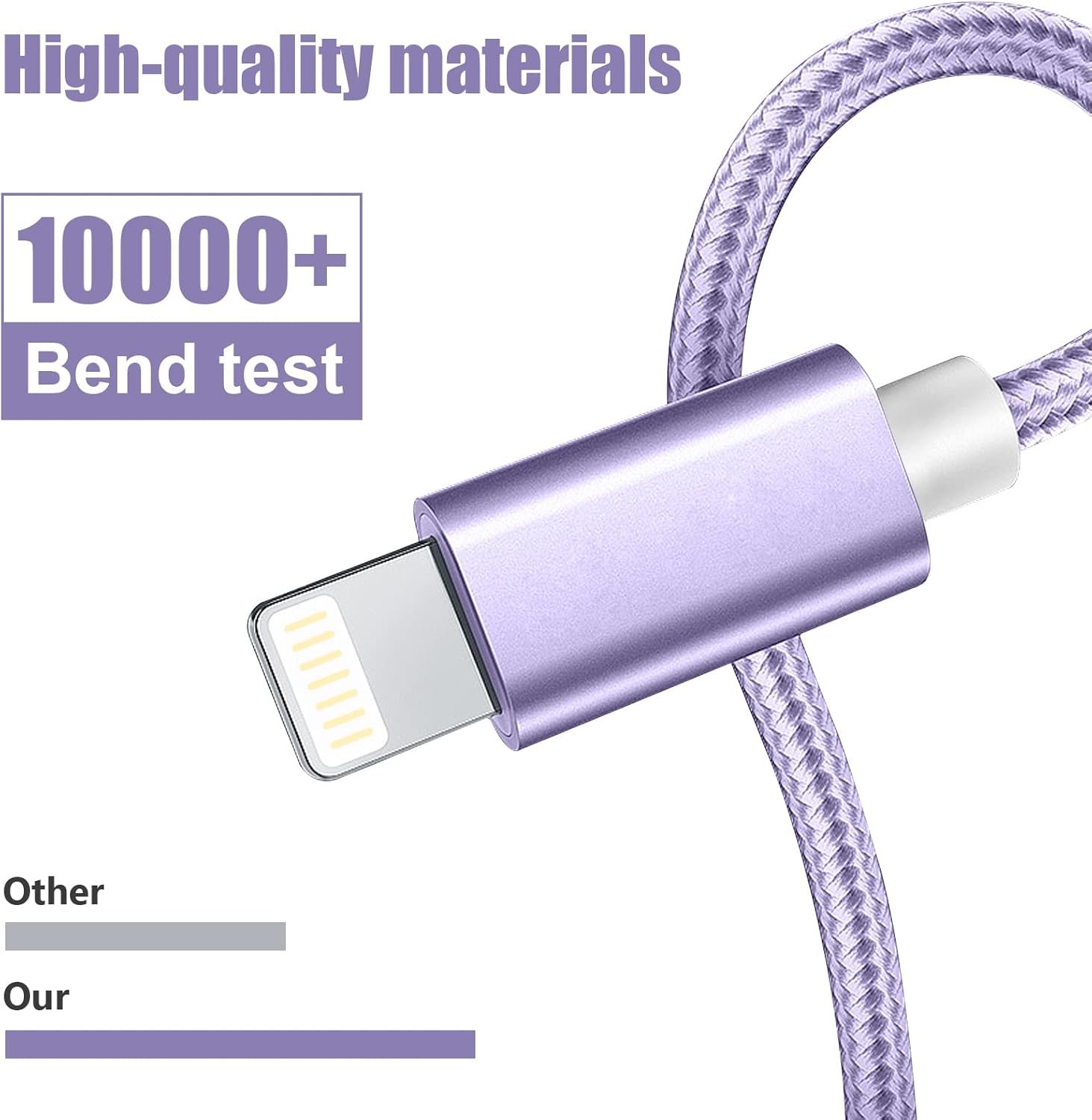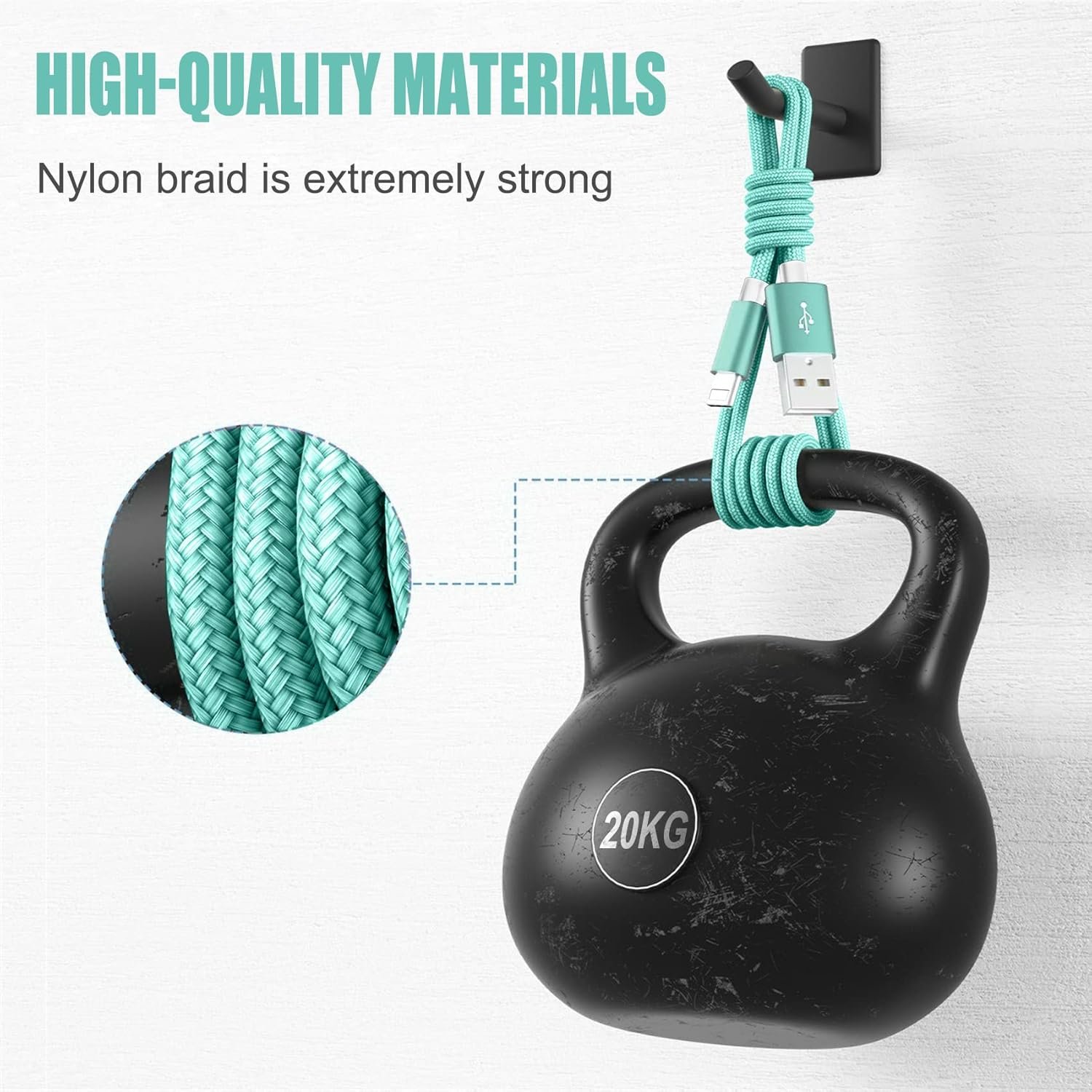 High-quality nylon braided wire is tightly woven, has excellent anti-twist and abrasion resistance, and has an enhanced stress point with a bending life of more than 10000 times, guarantees durability and flexibilityand will not easily fall off your device.