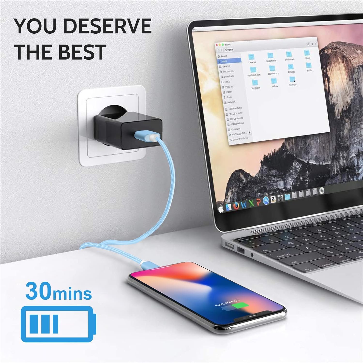 This iPhone charger cable supports fast charging (up to 2.4A) while preventing overheating and overcharging, ensure that you and your devices are safe, sync and charge at the same time at the fastest speeds on your windows PC or Mac.