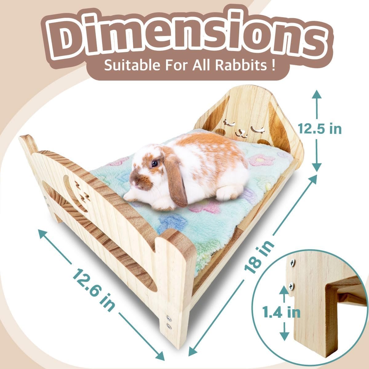 🐰 【 Suitable For All Size Rabbits 】 This wooden bunny bed is design for all rabbits to use . Tested by our office giant flemish rabbit Fluffy , even a rabbit like him can use the wooden bed without any concerns . The result of the test shows cleary that all rabbits can use this bed .