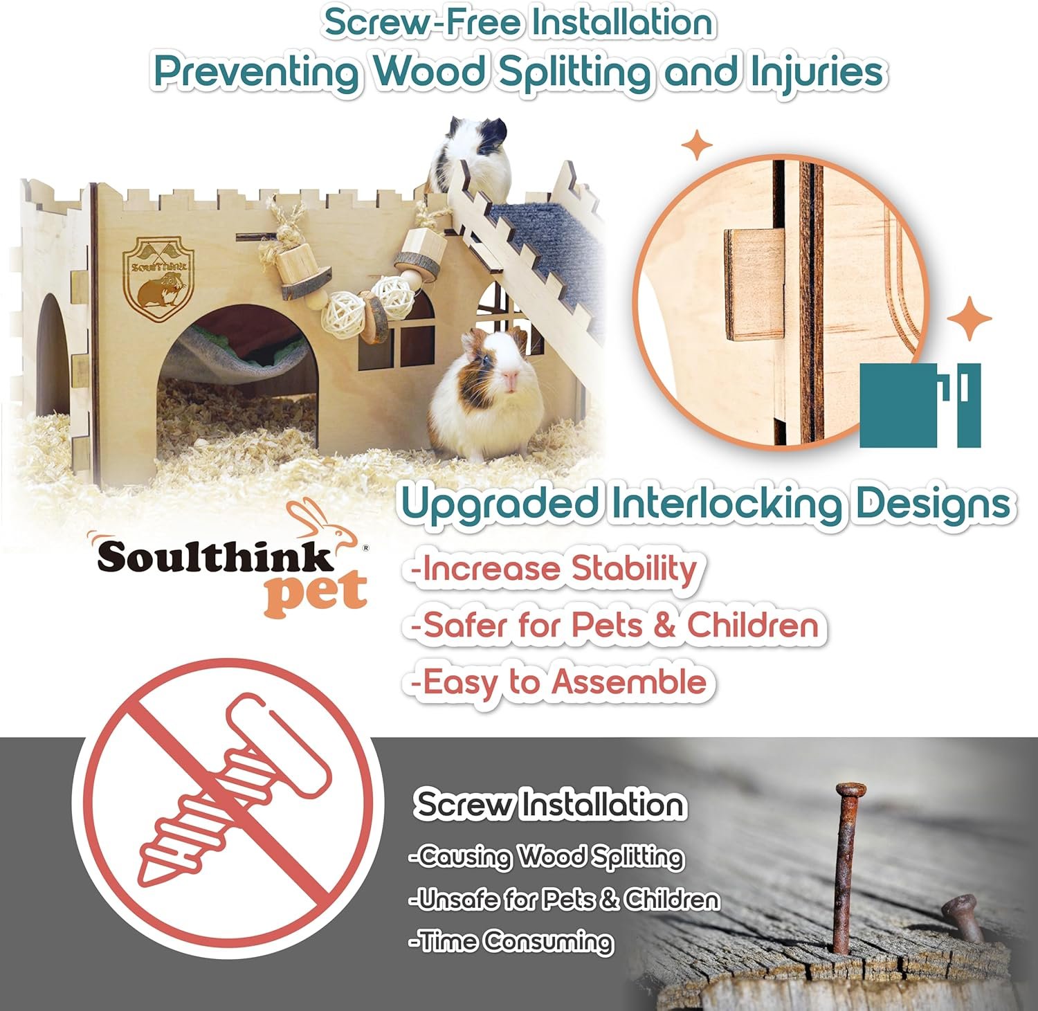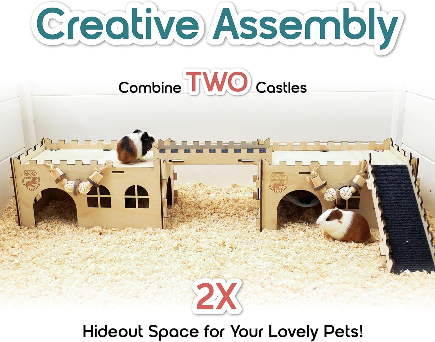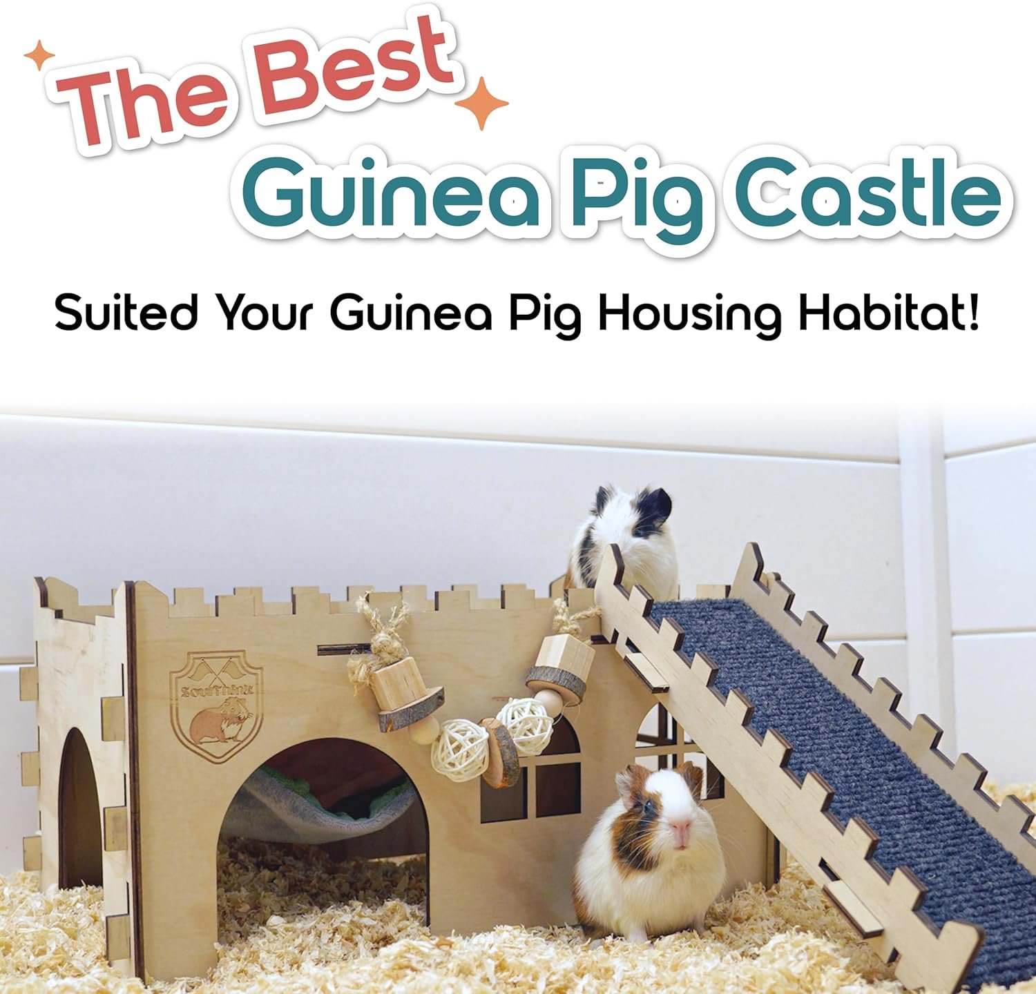 🐹 【 Premium Quality To Ensure Safety 】 Our guinea pig castle is made with 100% Premium Pinewood attached with a chew toy , so you can let your guinea pig to run , jump , and chew freely without worrying . Top notched crafthmanship on delivering the finest product will always be our goal