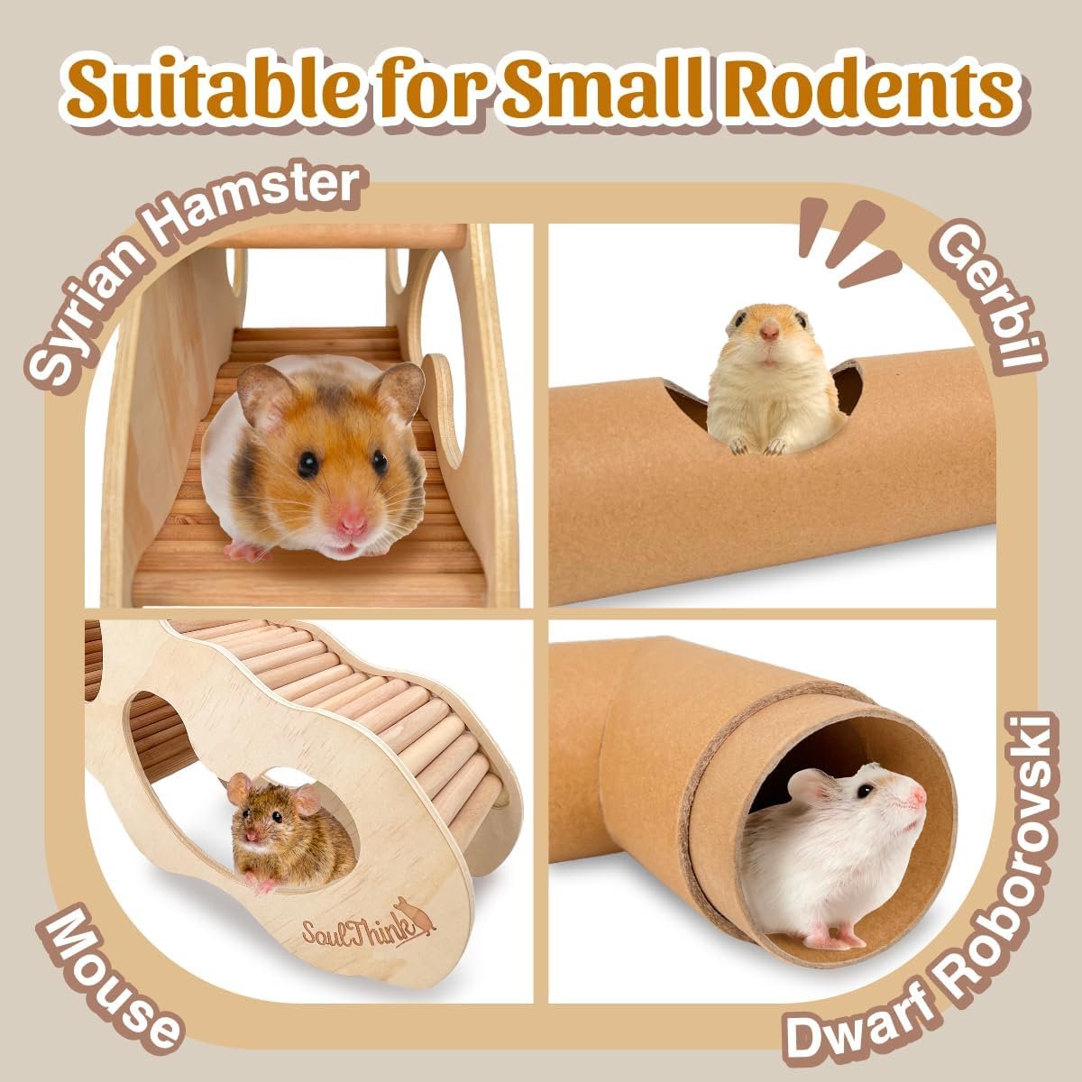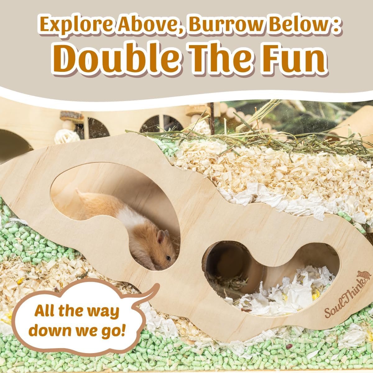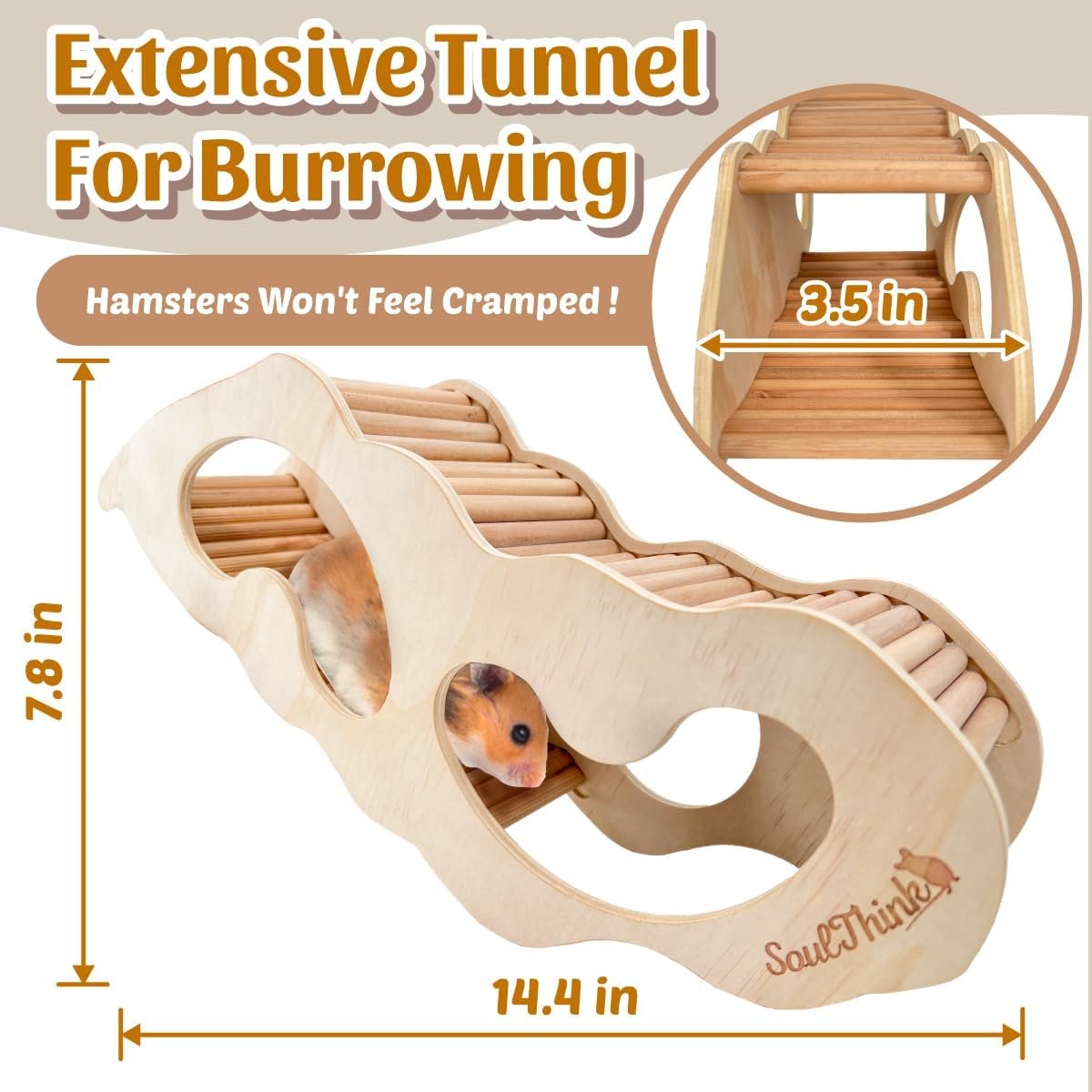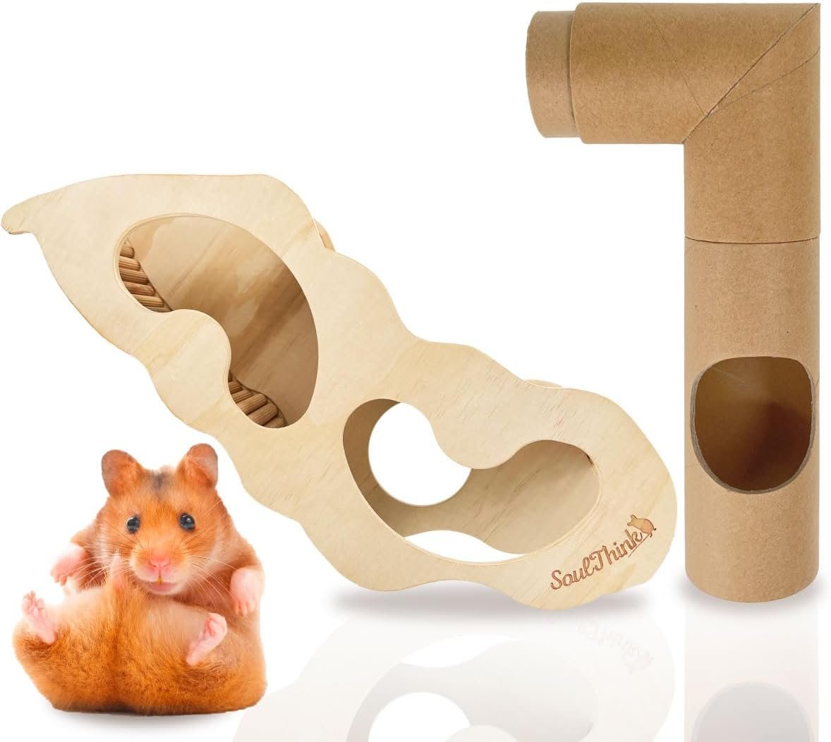 🐹 【 Vet Approved Safe Material 】 The tunnel is Made from 100% chewable natural premium pinewood coming with tubes made from corrugated board that is digestable . Both the tunnel and tube does not include harmful substances such as glue , varnish , and paint . Hamsters can chew as much as they want without having to worry about any underlying health related problems .