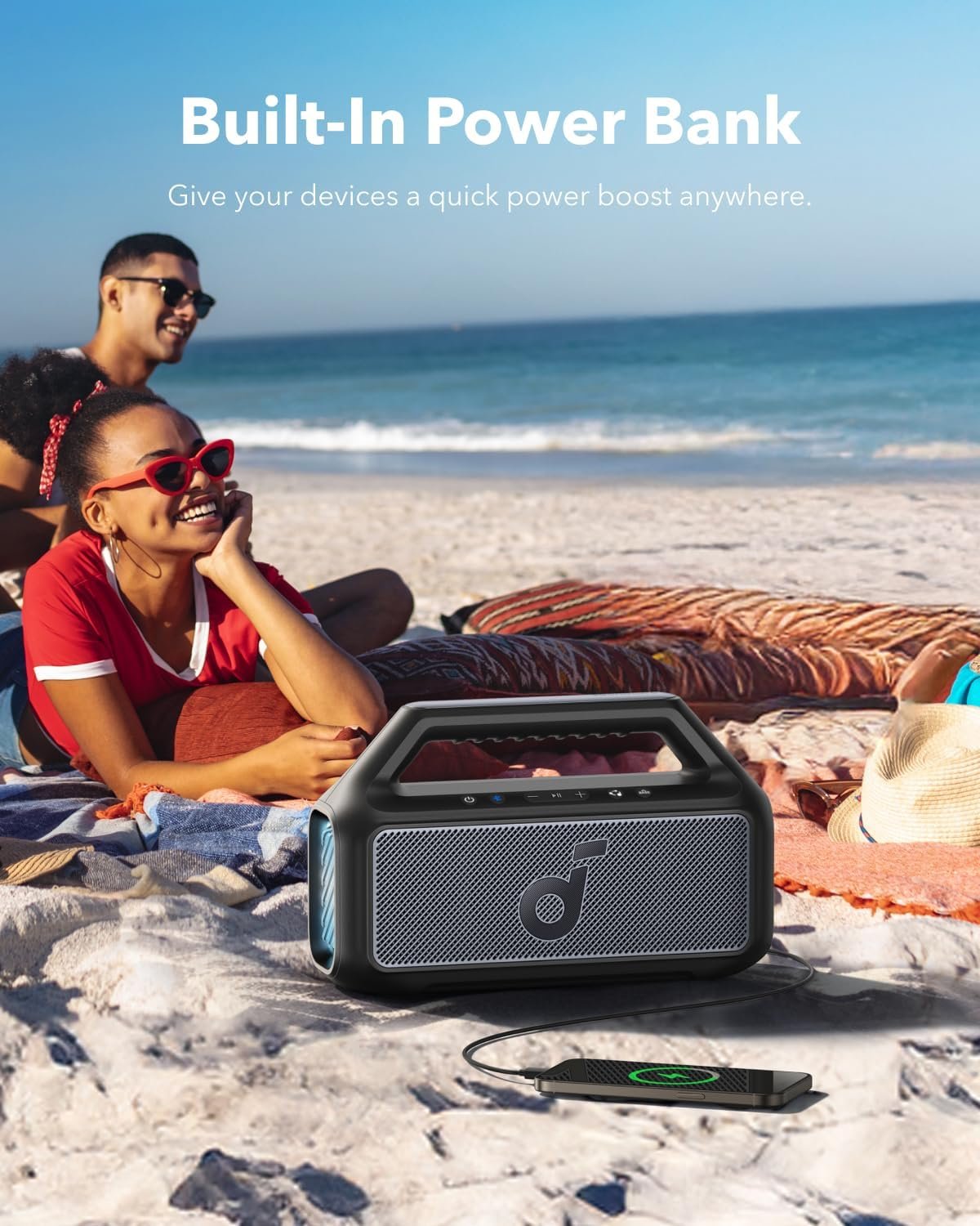 Listen All-Day Anywhere: Boom 2 outdoor speaker keep the beats playing for 24 hours on a single charge, and with the built-in power bank, you can keep your phone powered up wherever you are. (Playtime may very based on volume level and playback content.)