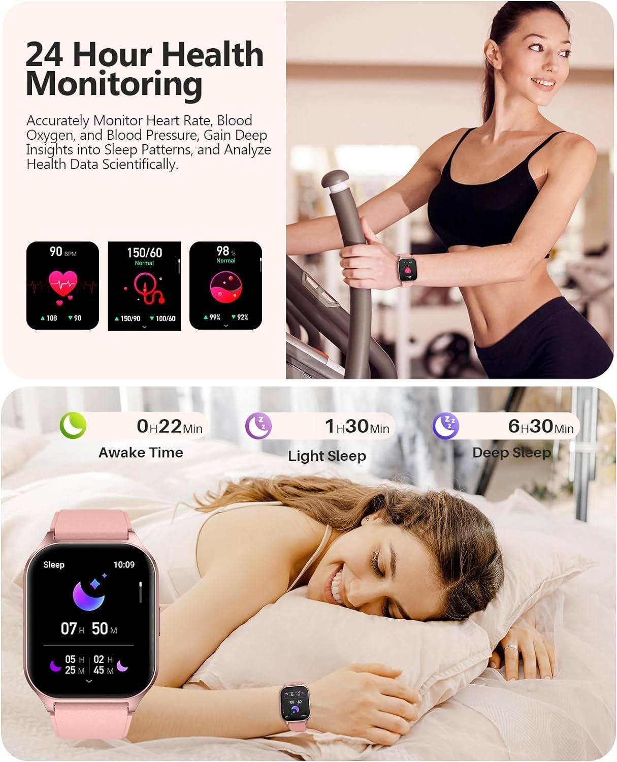 【24/7 Health Monitoring】 Experience comprehensive health tracking around the clock with real-time monitoring of your heart rate, blood oxygen levels, and blood pressure. Gain deep insights into your sleep patterns through detailed sleep monitoring, understanding different sleep stages, and receiving scientific sleep analysis. SOUYIE health monitoring smartwatch also includes female health tracking features.