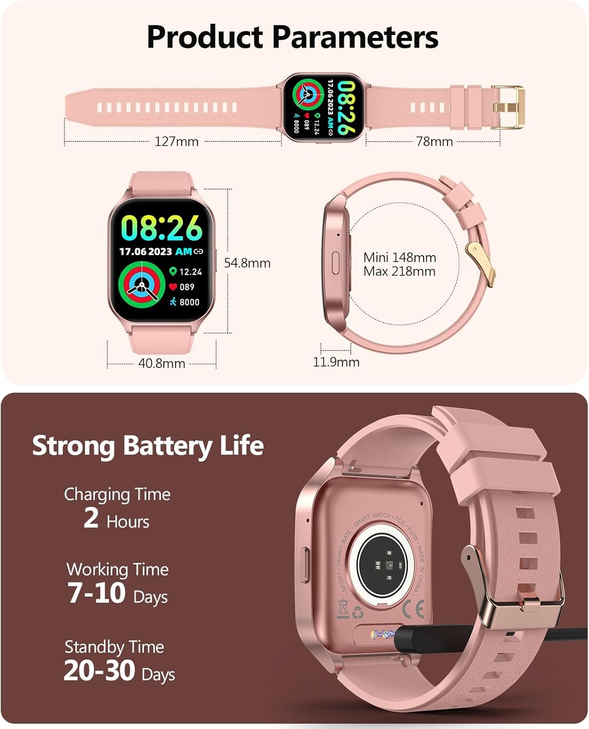 【Bluetooth Call & Smart Notifications】Make and receive calls with high-quality audio using the Bluetooth feature on your smart watch. Stay informed with alerts from Facebook, WhatsApp, Instagram, Twitter, TikTok, Messenger, and more. Use voice commands with the built-in assistant for music control, weather checks, alarms, and more. (Note: Turn off “Media Audio” for independent audio control between your phone and smartwatch)