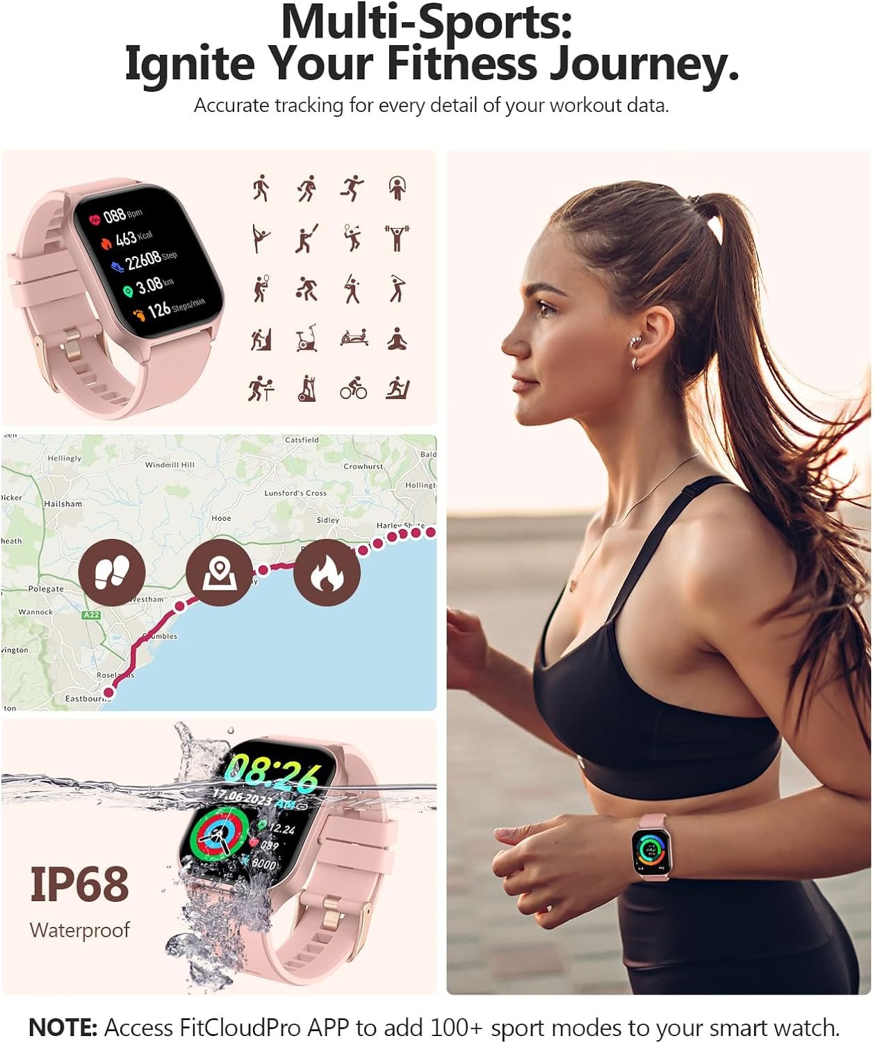 【Multiple Sports Modes and Activity Tracking】 SOUYIE sports smart watch supports common activities like walking, running, swimming, dancing, hiking, and cycling. It accurately tracks daily steps, distance, calorie expenditure, activity duration, and exercise progress. Benefit from comprehensive data analysis via the professional app to gain insights into your workout status. Moreover, the FitCloudPro app allows for the addition of over a hundred sports modes to your smartwatch.