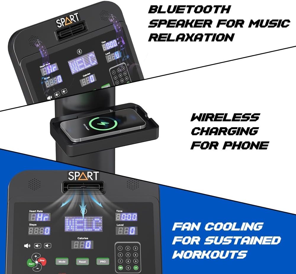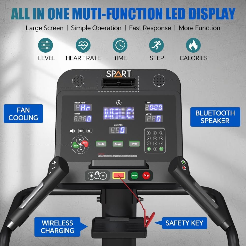 🔝【2024 Professional & Commercial Design】: SPART 2024 new style commercial stair climber machine is built with rust-resistant polypropylene and durable alloy steel, provides greater flexibility and durability. The new shell has adopted a unique design with the addition of light strips, which will light up when you turn on the power. With the addition of the cooling fan, bluetooth, wireless charging and safety key, you can enjoy safety and fun during exercise.