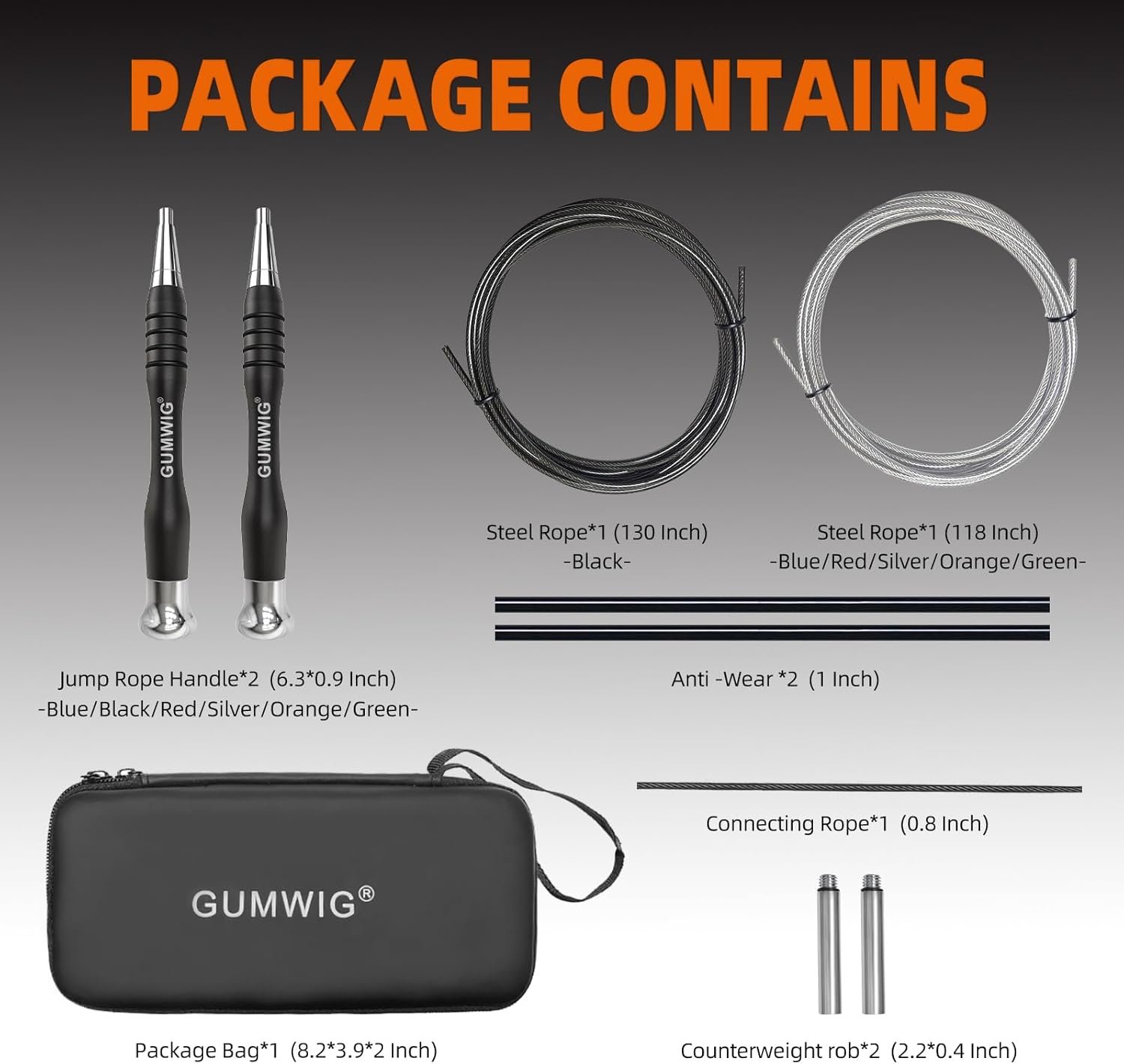 2 Pcs free-tangle ropes of 2 colors and lengths: The jump rope designed with a diameter of up to 3mm wire steel rope and rubber wrapping, which is free-tangle and more durable. Suit for kids jump rope.Two steel wire ropes are of different lengths and colors (one is 9.8 inches, and another is 10.8 inches,silver and black). Jump rope for kids are also equipped with two anti-wear tubes to protect better and store your steel wire ropes.