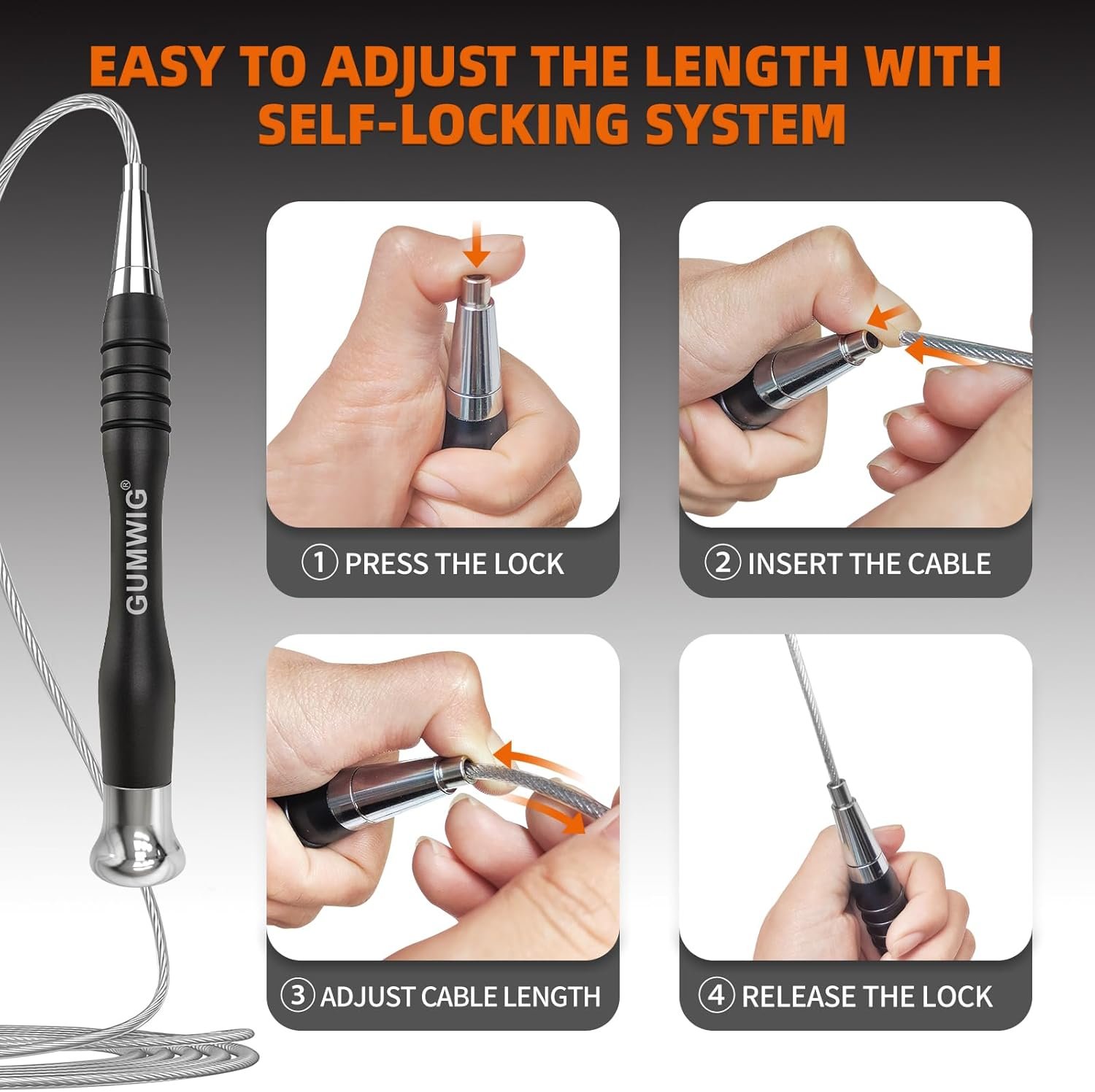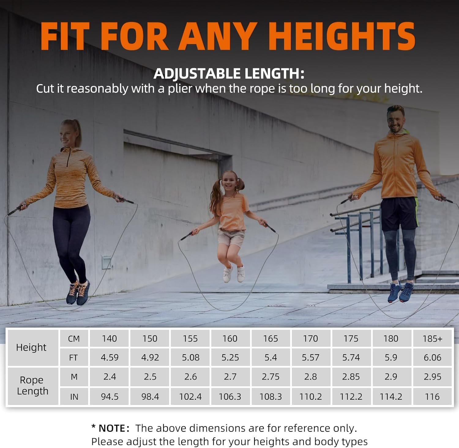Easy to adjust the jump rope lengths with a self-locking system: Jump rope self-locking system can easily adjust the length according to height and body shape without tools. The Weighted jump rope length can be easily adjusted without tools. If the jump rope is still too long, you can use pliers to cut it short as needed.